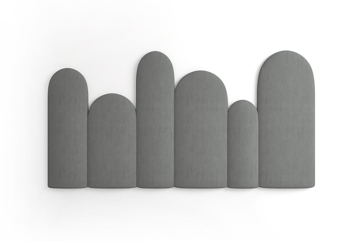 Set of Upholstered Panels is an original solution for revitalizing a child's room or bedroom. Includes 6 modules with a rounded top edge resembling a fence, which can be freely combined to create your own wall arrangement. The panels are made with an emphasis on quality, safety, and comfort. The gray design is universal and easily combines with other furniture and accessories.