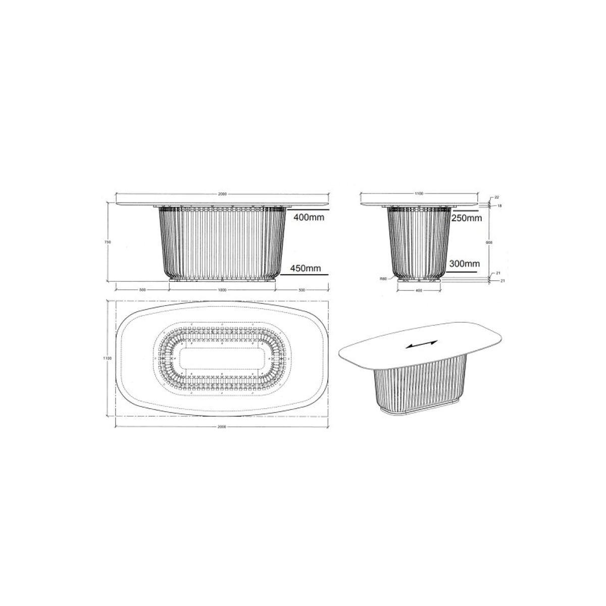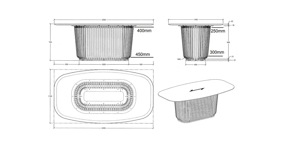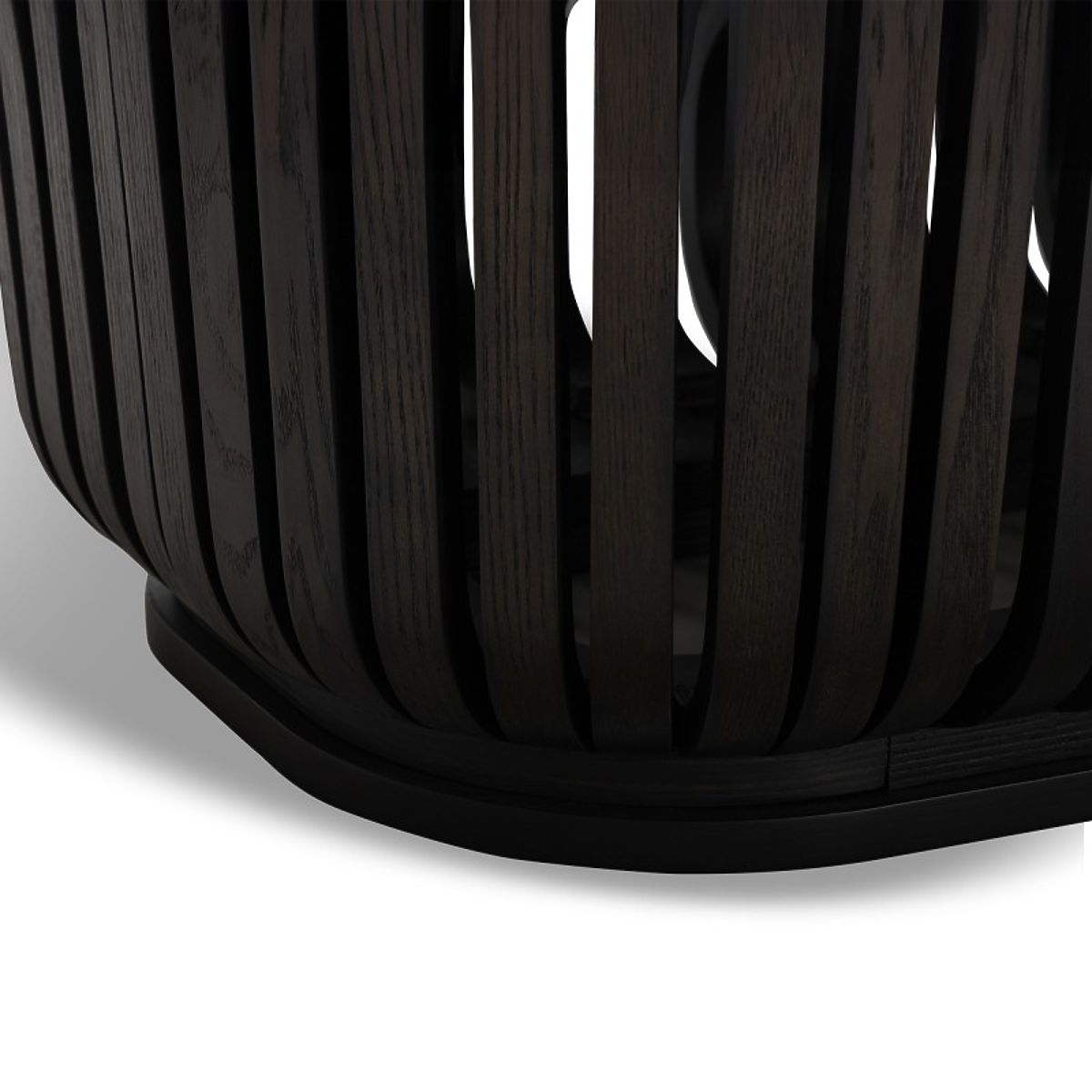 Dining table Araia with black ash veneer and decorative slats. .. more