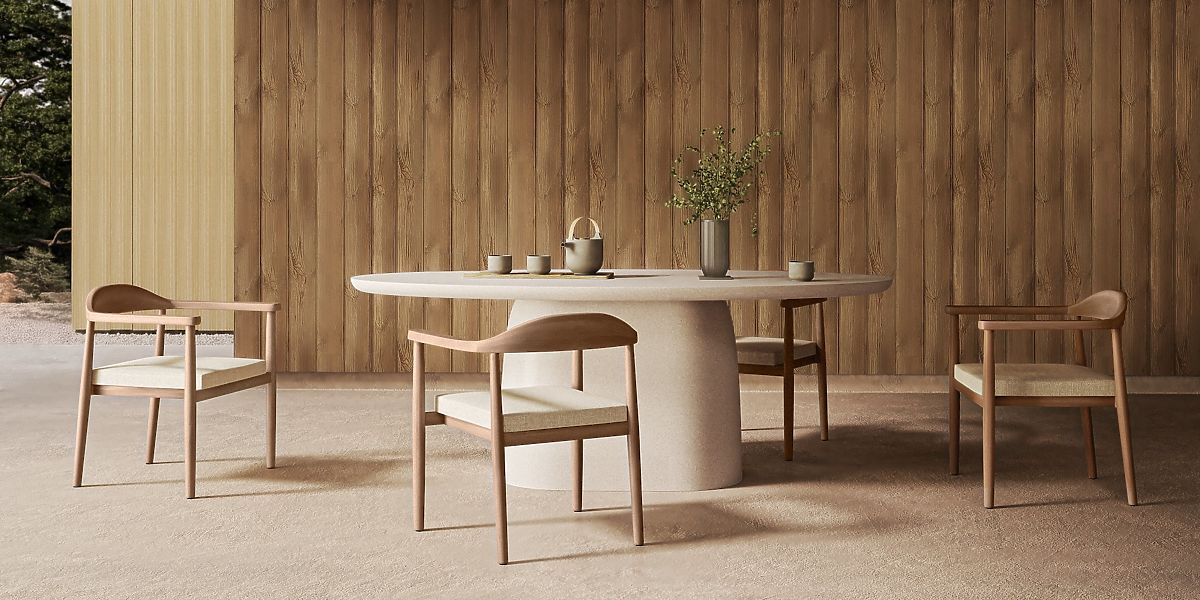 Oval Biellora table with a matte, speckled surface for garden elegance. .. more