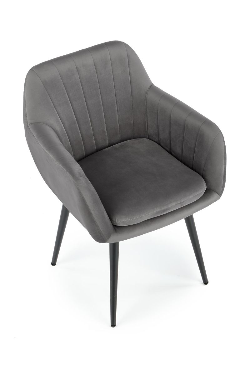 Gray velvet chair with powder-coated steel frame. .. more