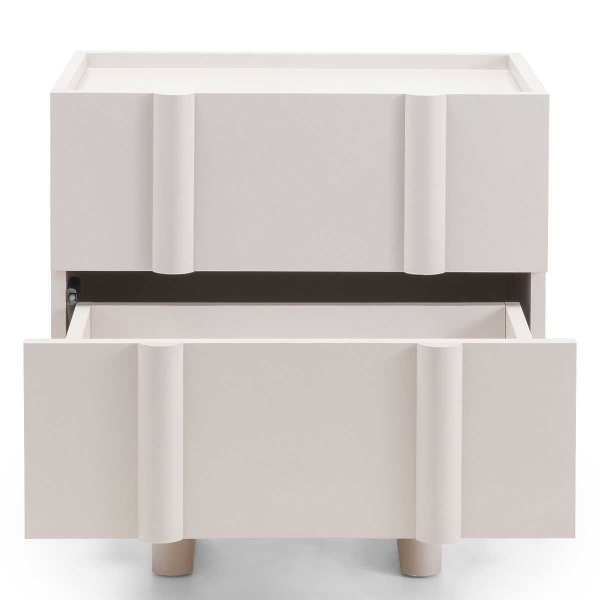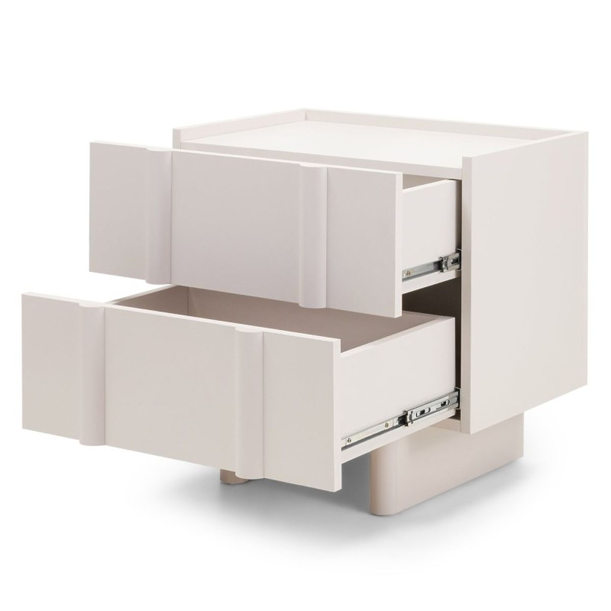 Moss nightstand in cashmere with two push-to-open drawers. .. more