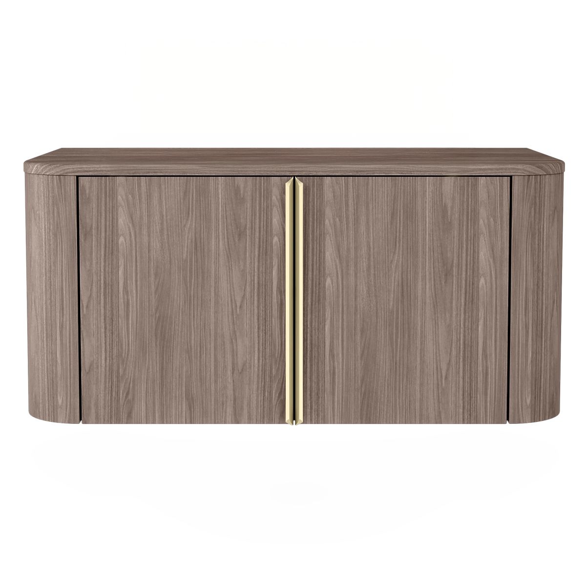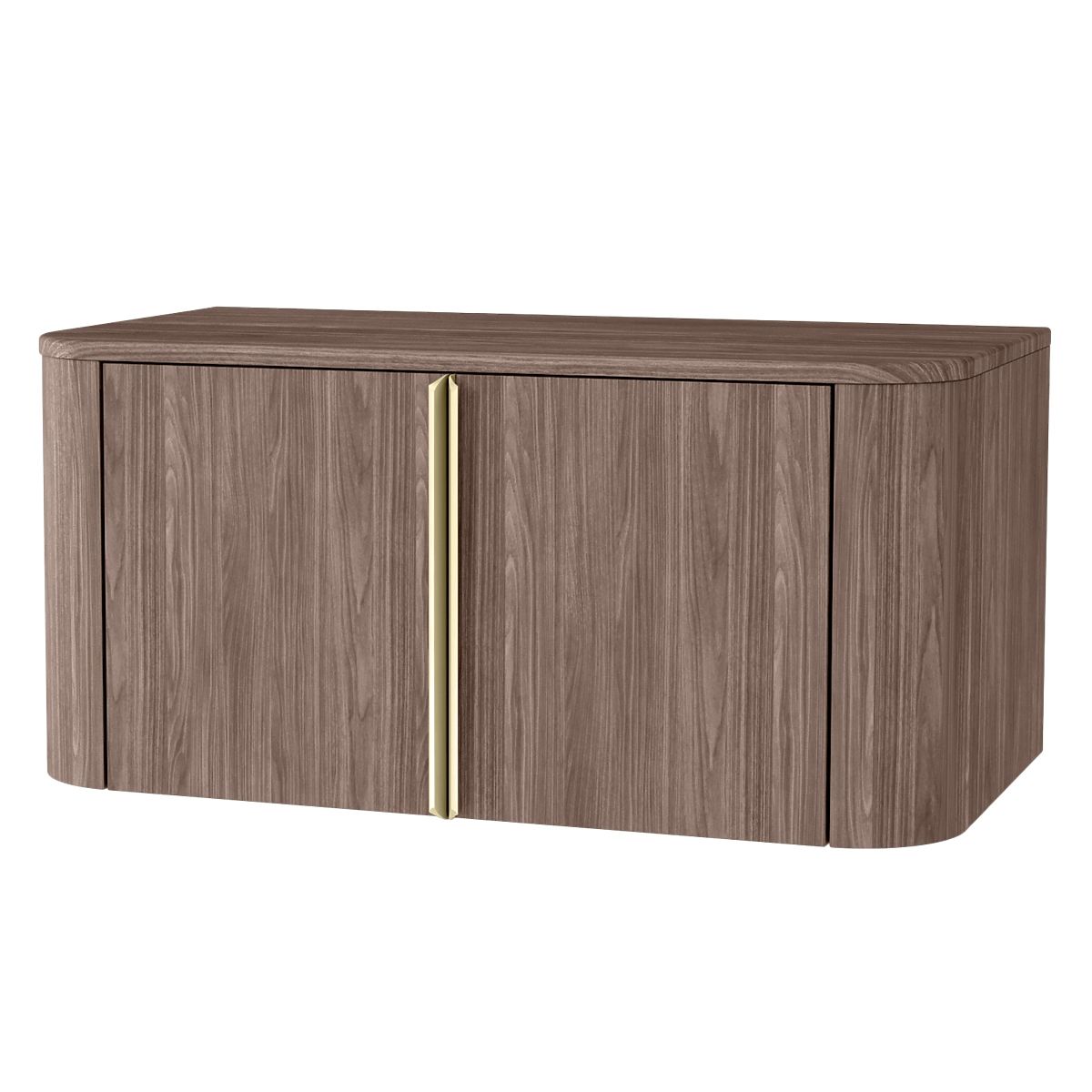 Bassa cabinet combines Lincoln walnut with gold handles for a refined bathroom style. .. more