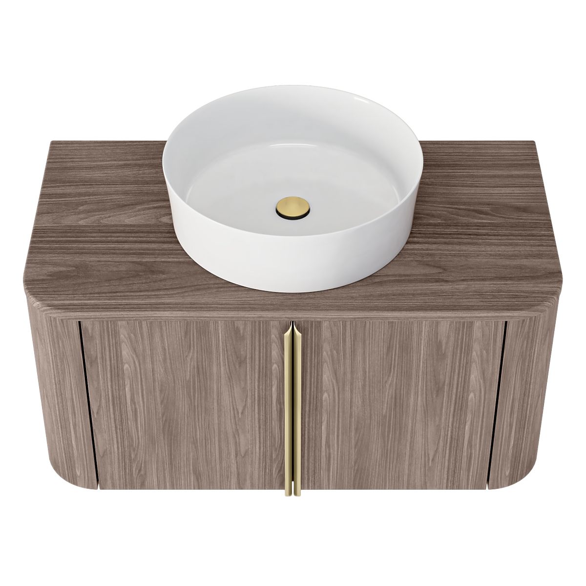 Lukahome.co.uk » Bathroom and toilet / Bathroom cabinets / Cabinet for Basin on Countertop Bassa 80 cm, Lincoln Walnut, Gold Handles, Rounded