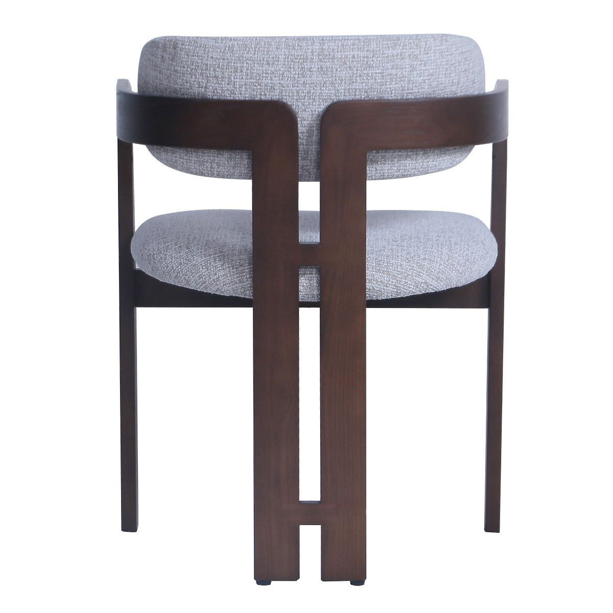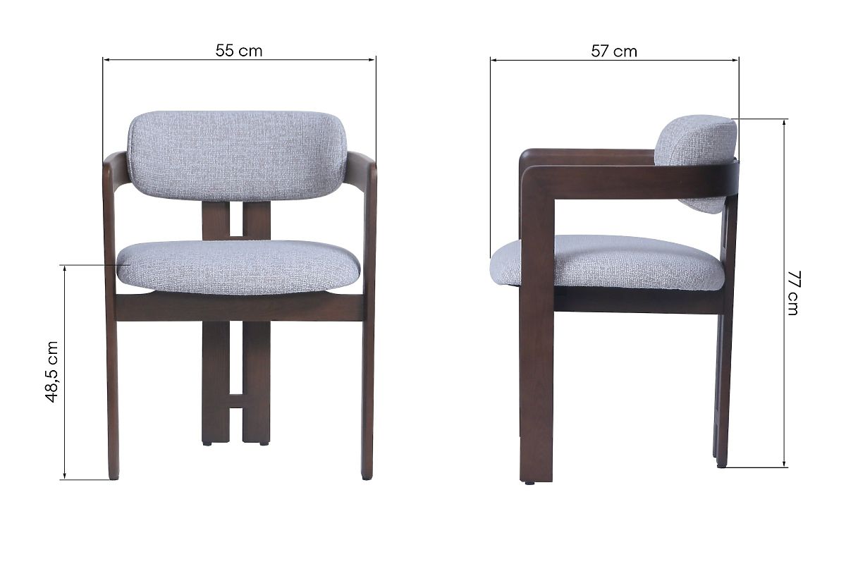 Beige-cream fabric chair with dark walnut ash wood legs. .. more