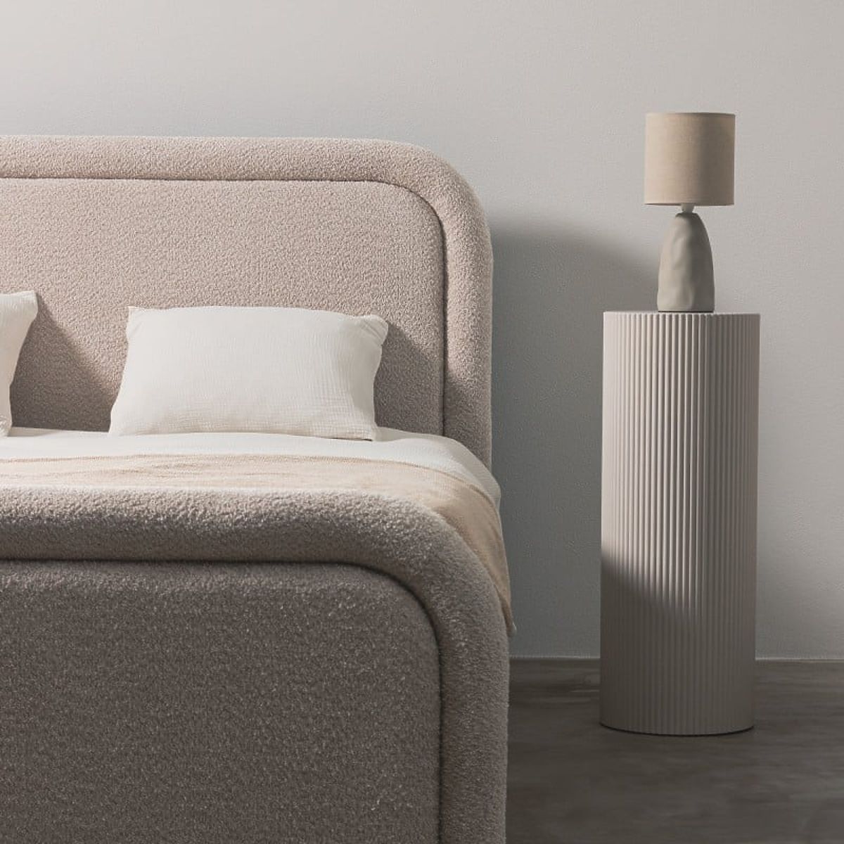 Upholstered Bed Ovoid 160x200 cm, with Slatted Base and Storage, Rounded, Beige