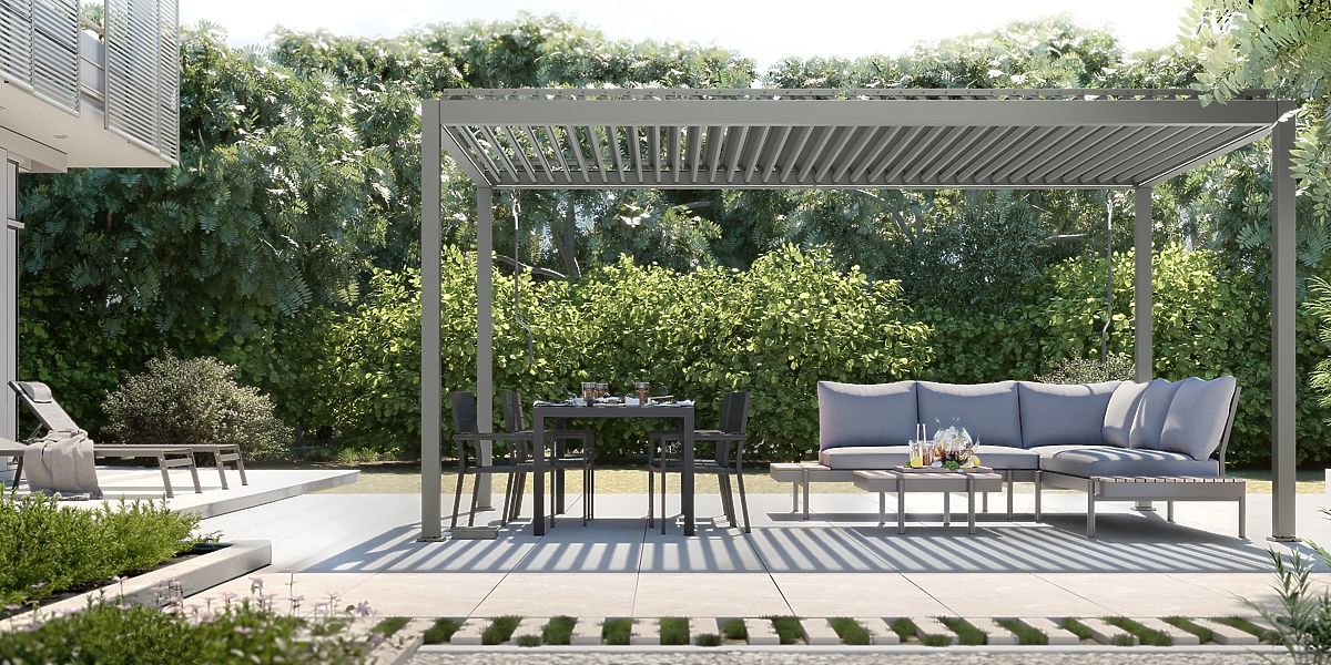 Freestanding Garden Pergola Antilla in Aluminum, 5x3 m, Bioclimatic, Adjustable Louvers, Anthracite
