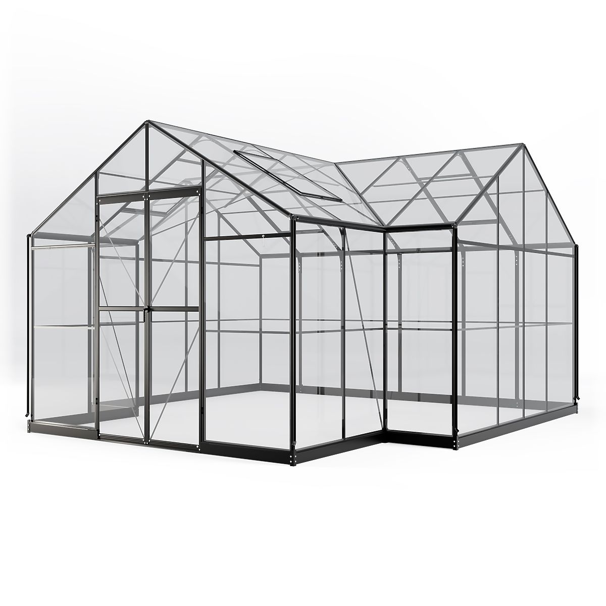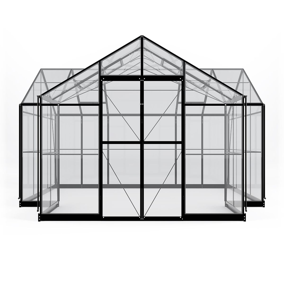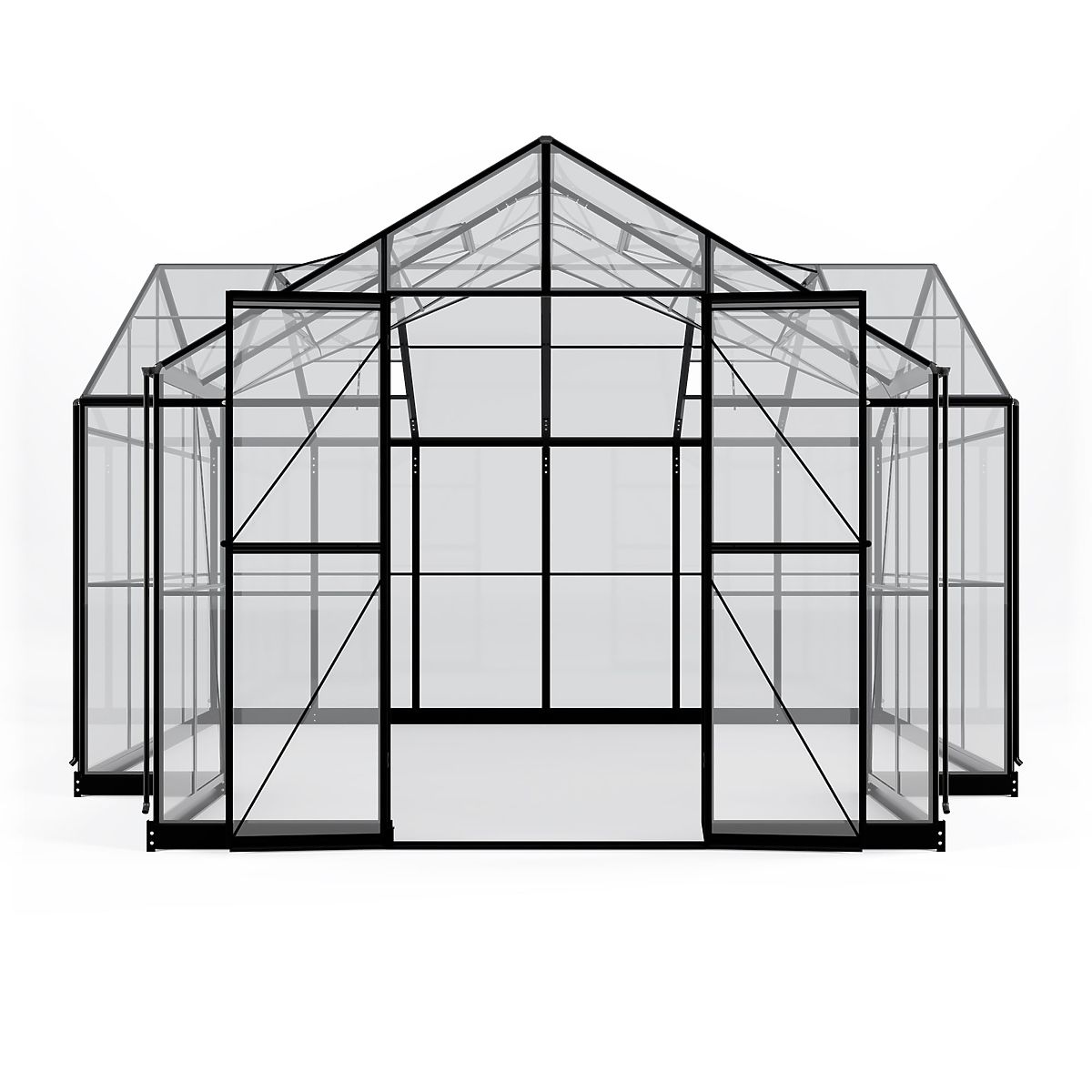 Garden Orangery Royal Green Standard 16.6 m² with Base, Tempered Glass 4 mm, Aluminum, Black