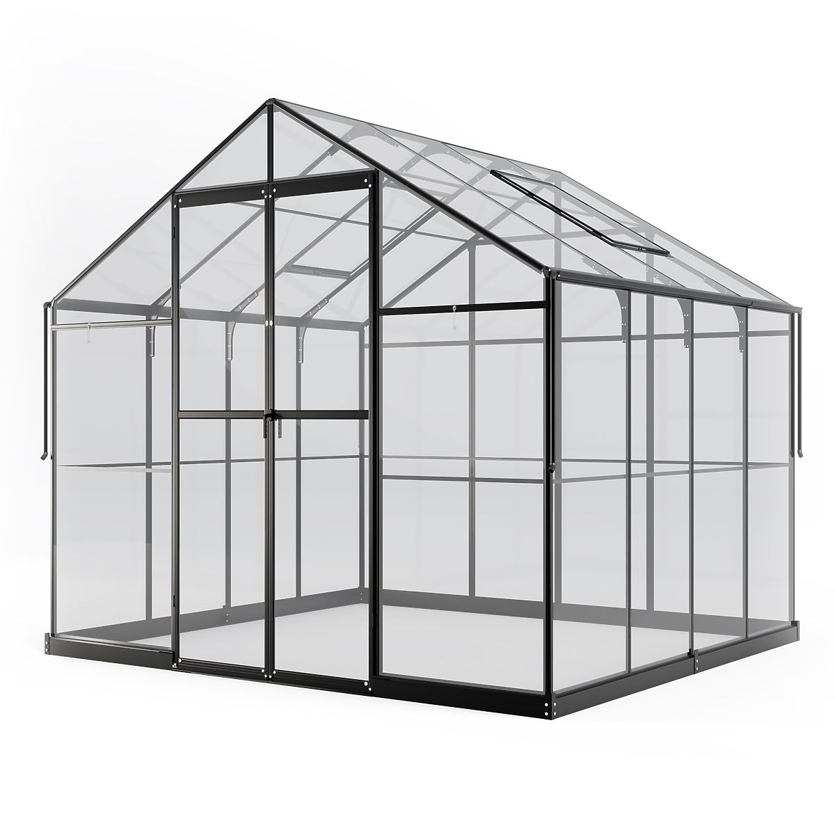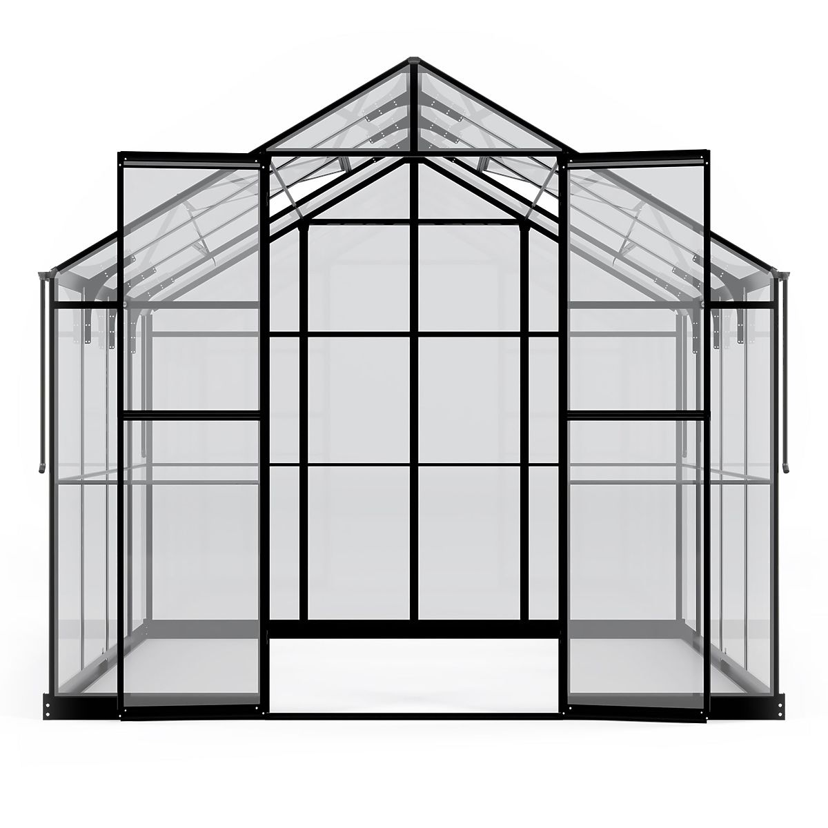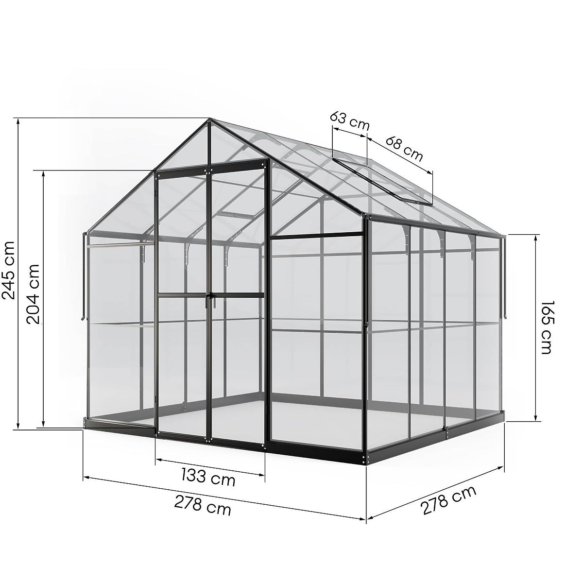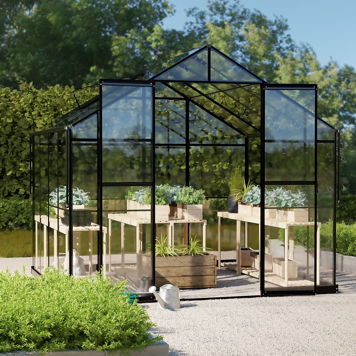 Garden Greenhouse ProGlass Classic Compact 7.7 m² with Base, Tempered Glass 4 mm, Aluminum