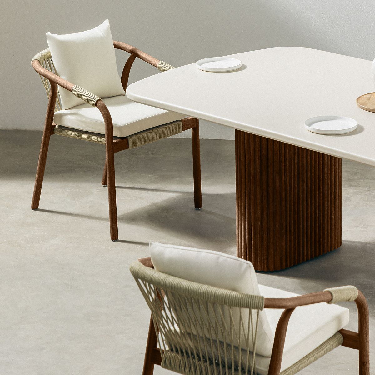 • Chairs equipped with light beige cushions