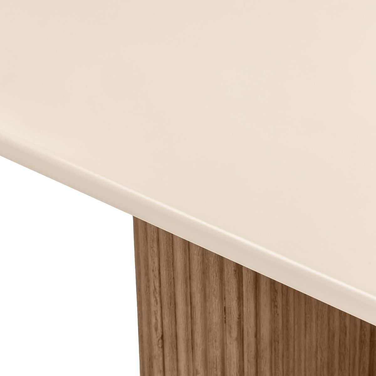 • Table with light beige top and rounded edges