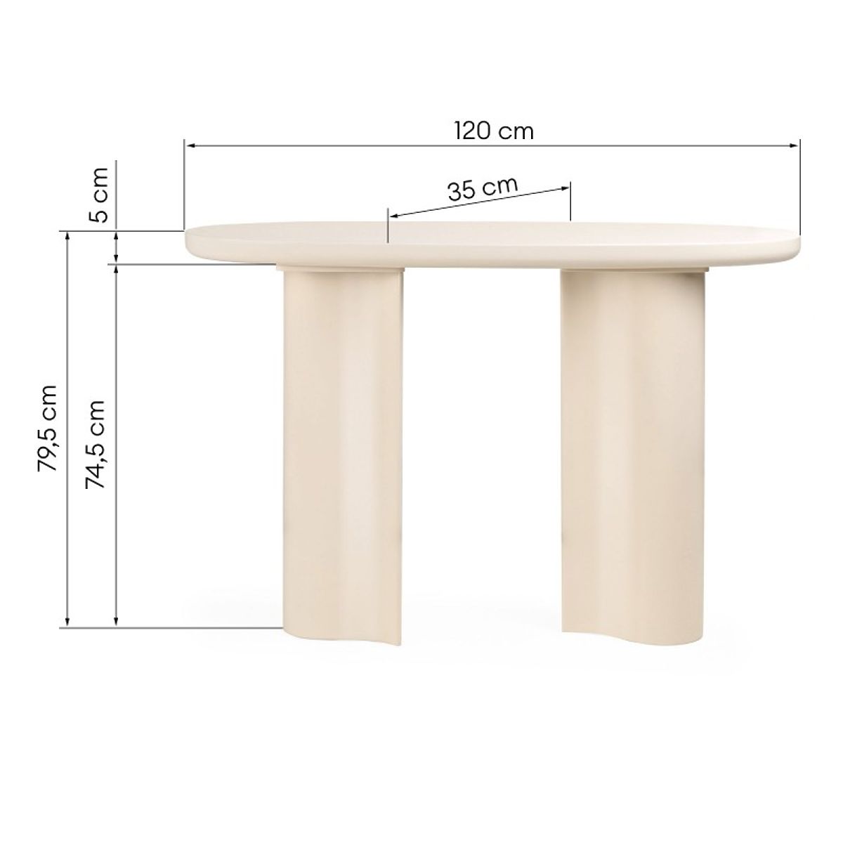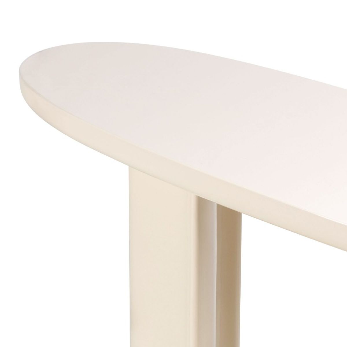 Light beige glossy console with an oval top and irregular base. .. more