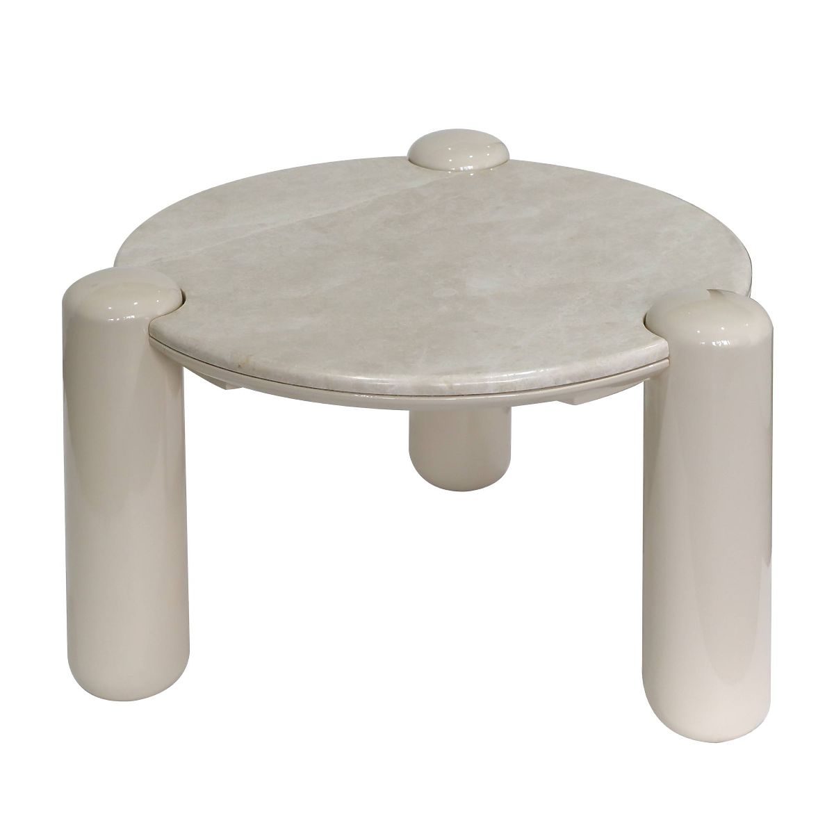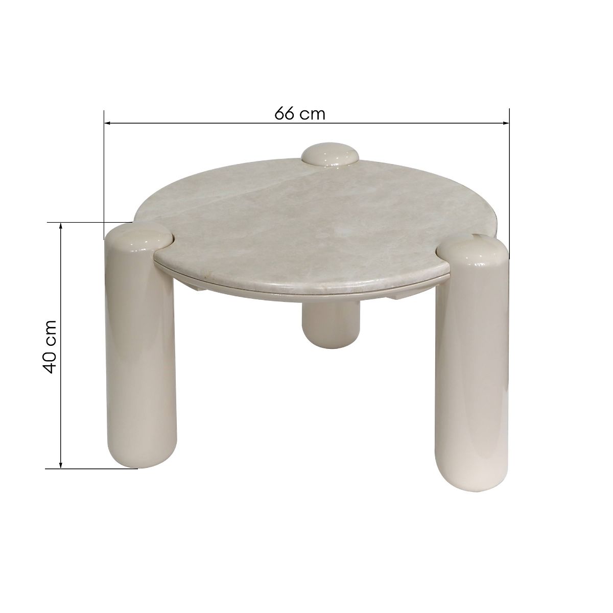 Round marble top with light beige glossy legs. .. more