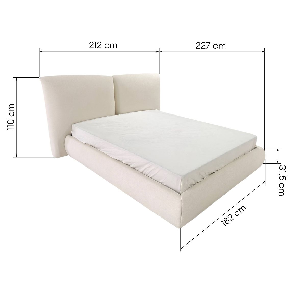 Upholstered bed with high headboard and storage space. .. more