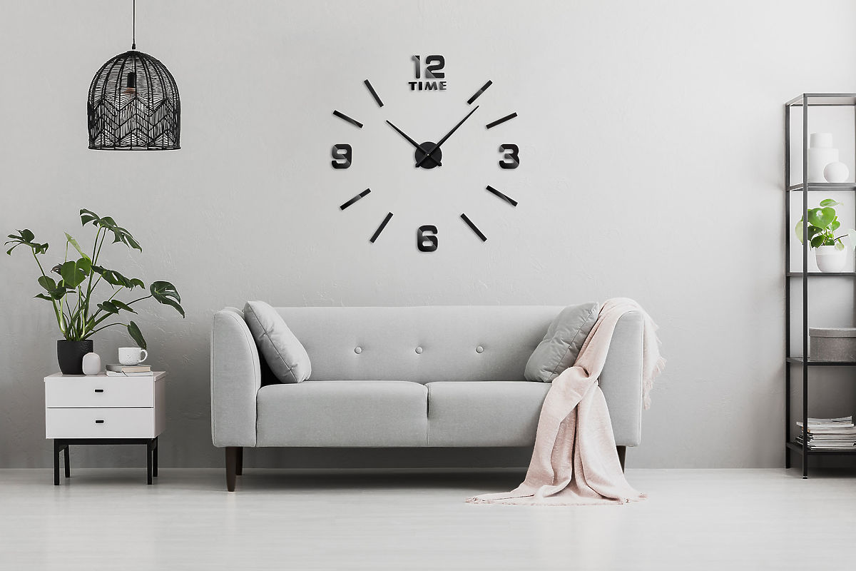 Wall Clock Diy BAST 3D Black Purpose: office, bathroom | Colors: black Modern DIY (do it yourself) clock. A perfect accessory for any living room or office. The size of the clock is up to you! You can give it any diameter! We recommend a size of 80-100 cm, as the clock looks best then. The clock can be stuck on the wall or other smooth surfaces. Product Features Powered by 1x AA battery (not included) Attached using adhesive tape. The tape is located on the back of each element. The size of the clock is up to you! 3D effect Hands made of metal Numbers made of EVA foam + glossy plastic Mechanism in the clock case The package includes a template to facilitate assembly and instructions in Polish Product Dimensions Package dimensions: 41 x 13 x 5 cm Length of the large hand: 39 cm Length of the small hand: 31.5 cm Dial diameter: 12 cm Dimensions of number I - 1.7 cm x 15 cm Dimensions of numbers 3, 6, 9, 12 - 11.5 x 9 cm Letter size: 4 cm Additional Information The colors shown are indicative - they may differ from the actual ones due to different monitor settings and photo editing processes. Actual dimensions may differ from those listed above. Error tolerance may be +/- 5%. Brand: GMM Group Product Code: CLOCK BAST BLACK EAN Code: 5902340311332 Color: black Height: 80 - 100 cm Material of numbers: EVA foam + plastic Material of hands: metal Assembly: no drilling, self-adhesive clock