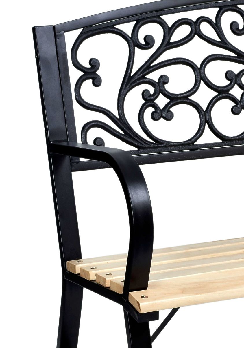 Garden Bench Steel-Cast Iron TITO Purpose: garden Make your garden exceptional! The Tito bench is made from powder-coated steel, a sturdy cast iron pattern on the backrest, and wood. This solid bench adds style to your garden and ensures a pleasant rest during your free moments. Specifications ✅ Sturdy steel construction: Powder-coated steel ensures not only durability and resistance to weather conditions but also an elegant black appearance that fits any environment. ✅ Decorative cast iron backrest: The unique cast iron pattern not only looks beautiful but also provides a firm and comfortable backrest, enhancing user comfort. ✅ Natural wooden seat: Consists of five sturdy planks that give the bench a warm, natural charm, while being durable and comfortable to use. ✅ Easy assembly: The bench is designed for easy assembly, allowing quick and hassle-free placement in your chosen outdoor space. ✅ Classic pattern: The timeless design ensures the bench fits perfectly into both modern and traditional outdoor spaces. ✅ Ergonomic shape: The specially contoured shape of the bench ensures maximum comfort while sitting, making it an ideal place for relaxation in the fresh air. ✅ Profiled armrests: Designed for comfort, the armrests are suitably shaped, providing comfortable support for the shoulders and making the time spent on the bench even more enjoyable. ✅ Seat: poplar wood Invest in the Tito Garden Bench and enjoy the comfort, style, and durability it brings to your garden, terrace, or porch. Dimensions ✅ Width 120 cm ✅ Leg spacing 120x55 cm ✅ Height 88 cm ✅ Seat height 39 cm ✅ Armrest height 63 cm ✅ Height from seat to armrest 23.5 cm ✅ Armrest length 42 cm ✅ Armrest width 4 cm ✅ Backrest 111x35.5 cm Maintenance: The delivered product has been pre-lacquered, providing protection during transport and storage. Like any natural wood product, it needs to be gradually maintained by renewing the lacquer layer. The frequency of renewing the lacquer layer will depend on the method and intensity of use (if the product is left outside and exposed to weather conditions, the lacquer layer should be renewed more frequently). A clear polyurethane wood lacquer should be used for maintenance. In case of damage to the lacquered finish on metal parts, they should be protected from corrosion by repainting. The product is not resistant to extreme weather conditions such as hail, frost, etc. During winter, the product should be stored indoors. Benches and tables should be cleaned with a damp cloth. The product should not be cleaned with strong detergents or sharp objects. The product should be protected from heavy contamination. Additional Information The presented colors should be considered indicative - they may differ from the actual ones due to different monitor settings and the photo editing process. Actual dimensions may differ from those listed above. Error tolerance may be +/- 5%. Brand: OGRODOVIA Product Code: 062526MG EAN Code: 5905523062526 Frame Color: black Overall Height: 88 cm Backrest Height: 35.5 cm Armrest Length: 42 cm Seat Height: 39 cm