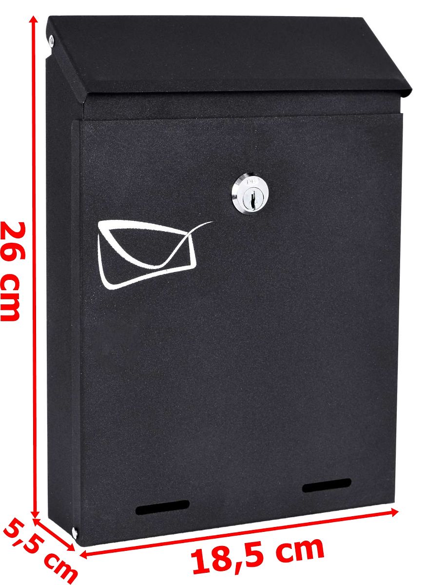 Odvin Black Mailbox for Letters Purpose: Receiving correspondence | Colors: Black ⭐Weather-resistant ⭐Lockable with a key ⭐Purchase from the manufacturer The modern and functional Odvin anthracite mailbox, designed with durability and elegance in mind. Its compact dimensions of 26 x 18.5 x 5.5 cm and a letter slot of 18 x 2 cm make it ideal for smaller spaces. Made from durable galvanized steel with a powder coating, suitable for both outdoor and indoor installation. Secure with a key lock – the set includes 2 keys and mounting elements. Solidity and style in one! Product Features Galvanized steel with powder coating Weather resistance Installation indoors and outdoors Lockable with a key Includes: 2 keys and mounting kit Color: Black Product Dimensions Height: 26 cm Width: 18 cm Depth: 5.5 cm Letter slot dimensions: 18x2 cm Mounting hole spacing: 10x12 cm In the Package Mailbox 2 keys Mounting kit Brand: Gockowiak Product Code: 5902340315583 Color: Black Overall Height: 26 cm Overall Width: 18 cm Overall Depth: 5.5 cm Material: Galvanized stainless steel Additional Information The displayed colors are for reference only - they may differ from the actual ones due to different monitor settings and photo editing processes. Actual dimensions may differ from those listed above. Error tolerance may be +/- 5%.