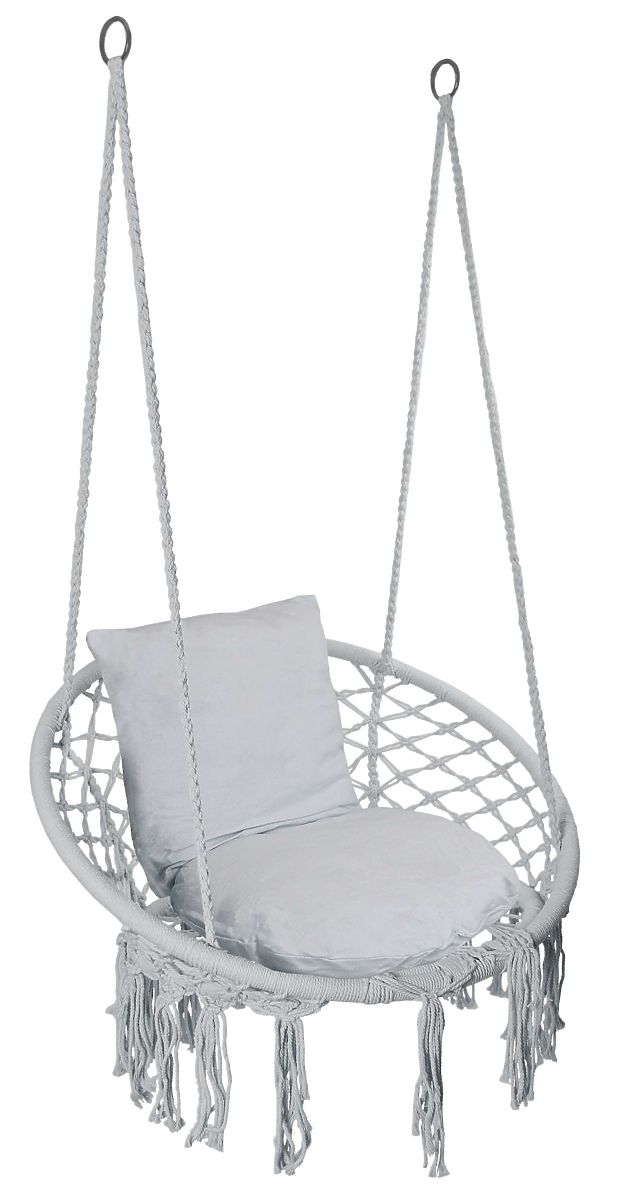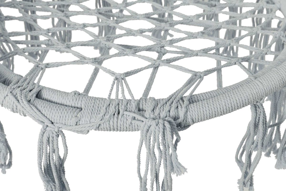 Hanging Chair Stork Nest TOGO Cream Gray Cushions Purpose: garden, terrace, interiors | Colors: gray ⭐️ Purchase directly from the manufacturer The Togo garden swing has been a constant hit for the past few seasons. The main reason is its durability - a steel frame and beautiful boho-style rope weaving. The Togo hanging chair is also very easy to assemble, as the suspension ropes are finished with metal rings. It can be hung at one or two points. The package includes 2 soft cushions. We recommend it for modern interiors as well as for the terrace or garden. Product Features Material: metal frame braided with strong rope Purpose: garden, terrace, balcony, apartment Maximum load: 150 kg 4 strong ropes ending with 2 metal hooks with an internal diameter of 5.5 cm Two large, soft cushions included Product Dimensions Seat area (diameter): 60 cm Overall diameter: 80 cm Overall height: 100 cm Fringe length: 30 cm Backrest height: 36 cm Diameter of braided frame approx. 2.7 cm Internal diameter of metal hook 5.5 cm Additional Information The presented colors should be considered as indicative - they may differ from the actual ones due to different monitor settings and the photo editing process. Actual dimensions may differ from those above. Error tolerance may be +/- 5%. Brand: eHokery Product Code: 5902340320808 EAN Code: 5902340320808 Color: gray Overall diameter: 80 cm Overall height: 100 cm Material: metal, rope
