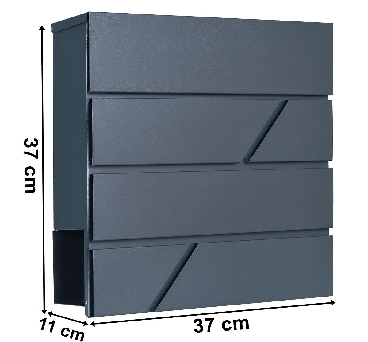 Letter and Newspaper Mailbox Model: TOVE | Color: Anthracite A practical mailbox made from galvanized steel with a powder coating. Its modern and timeless style is sure to stand out. The mailbox not only fulfills its basic functions but also pleases the eye and will make your neighbors envious! Made from high-quality weather-resistant materials, ensuring all correspondence is very well protected. Product Features Galvanized stainless steel Weather resistance Suitable for indoor and outdoor installation Lockable with a key Space for newspapers and flyers Includes: 2 keys and installation kit Color: Black Product Dimensions Height: 37 cm Width: 37 cm Depth: 11 cm Letter slot dimensions: 33.5x3.5 cm Package Includes Mailbox 2 keys Installation kit Brand: Gockowiak Product Code: 321034MG Color: Anthracite Total Height: 37 cm Total Width: 37 cm Total Depth: 11 cm Material: Galvanized stainless steel Additional Information The colors shown are indicative and may vary from the actual colors due to different monitor settings and photo editing processes. Actual dimensions may differ from those stated. Error tolerance may be +/- 5%.