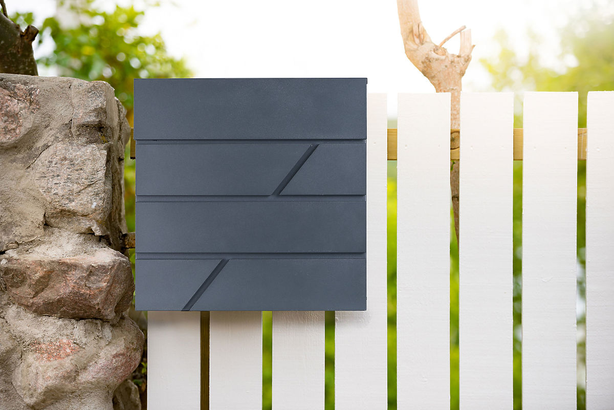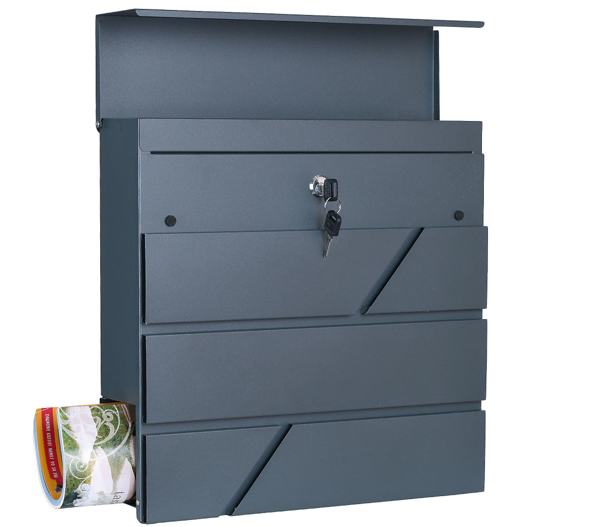 Anthracite mailbox with newspaper holder and weather-resistant design. .. more