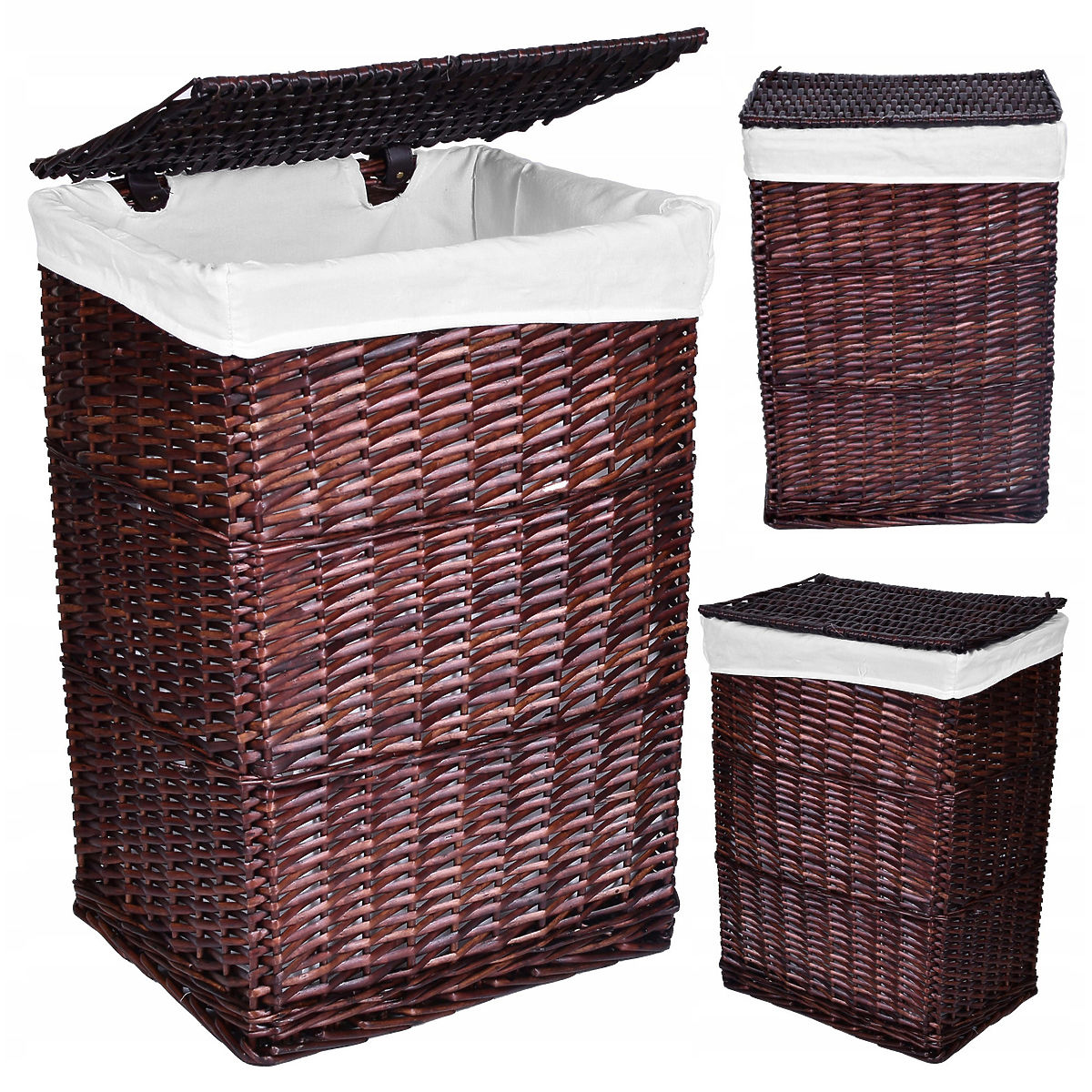 Wicker Basket 72L 40x30x60 cm Brown ⭐️ 100% Natural Wicker ⭐️ Basket Dimensions 60x40x30cm ⭐️ Basket Capacity 72L ⭐️ Handwoven ⭐️ Purchase Directly from Manufacturer ✨Brown Wicker Basket 40x30x60 72L - Perfect for Storing Laundry or Toys ✨ ☑️ Color: Brown The wicker basket is ideal for use in the bathroom for storing laundry. It is a very nice accessory that adds character to decorated rooms. The product is aesthetically made from wicker and finished inside with a linen lining. The lid features flexible straps serving as hinges. Features: Capacity: 72L 100% Natural Wicker Handwoven Interior finished with linen lining Flexible and aesthetic lid hinges Dimensions: Height: 60 cm Width: 40 cm Depth: 30 cm Additional Information Displayed colors are indicative - they may differ from actual ones due to different monitor settings and photo editing processes. Actual dimensions may vary from those listed. Error tolerance can be +/- 5%. Brand: Gockowiak Product Code: KOSZ WIKL. BRĄZ L EAN Code: 5902340307878 Color: Brown Height: 60 cm Width: 40 cm Depth: 30 cm Capacity: 72 l