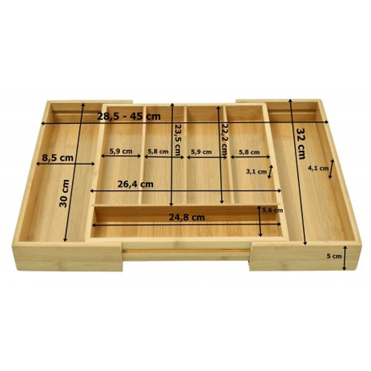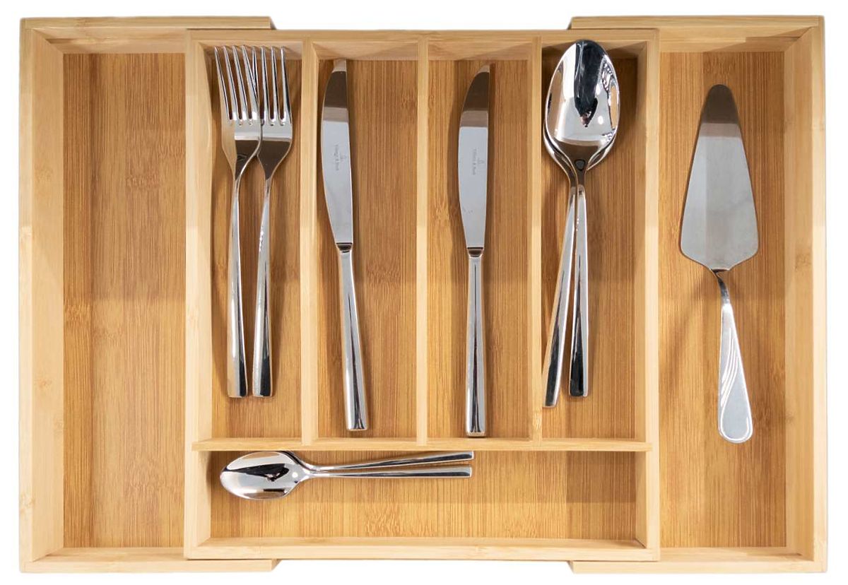 Product Features The insert has 5 practical compartments, expanding to 7 when unfolded Practical and functional drawer insert Made from 100% bamboo wood Easy to keep clean Suitable for most drawers Aesthetic design