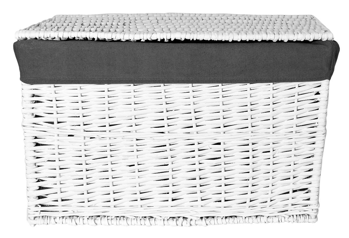 Wicker Chest 105L 66x40x40 cm White-Grey ⭐️ 100% Natural Wicker ⭐️ Capacity 105 Liters ⭐️ Handwoven ⭐️ In White-Grey Color ⭐️ Purchase Directly from Manufacturer ✨White-Grey Wicker Chest 66x40x40 – A Stylish Way to Keep Your Home Organized✨ The wicker chest is a practical and stylish solution that fits perfectly not only in the bathroom but also in the bedroom, living room, or children's room. It represents an elegant interior accessory that adds coziness and character. Made from natural wicker, it impresses with its aesthetics and sturdy craftsmanship, while the linen-lined interior protects stored items. The chest lid is equipped with flexible straps serving as hinges, ensuring convenient use and durability for years. Features: Capacity 105L 100% Natural Wicker Handwoven Linen-Lined Interior Flexible and Aesthetic Lid Hinges Dimensions: Height: 40 cm Width: 66 cm Depth: 40 cm Additional Information The colors shown are for reference only - they may differ from the actual ones due to different monitor settings and photo editing processes. Actual dimensions may vary from those listed above. Error tolerance may be +/- 5%. Brand: Gockowiak Product Code: KUF.WIK.BIAŁY-SZ XL EAN Code: 5902340315514 Color: White-Grey Height: 40 cm Width: 66 cm Depth: 40 cm Capacity: 105L