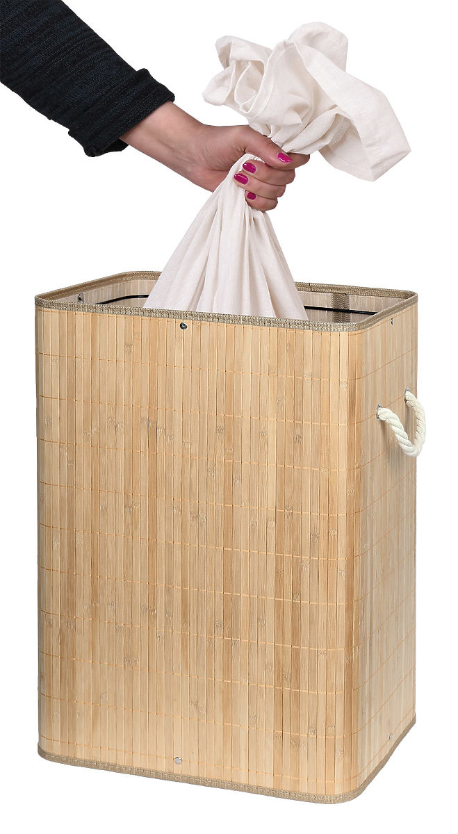 The most durable waste containers with a capacity of 80 liters. Made from natural bamboo. The interior is lined with a fabric bag. Simple construction, sturdy design. Conceals unpleasant odors. Allows for convenient and quick washing.