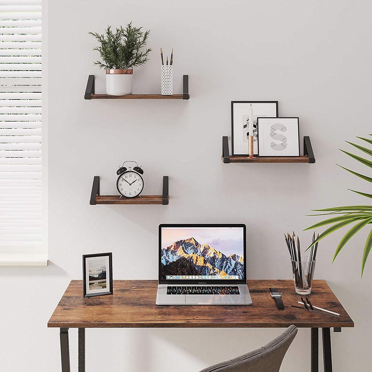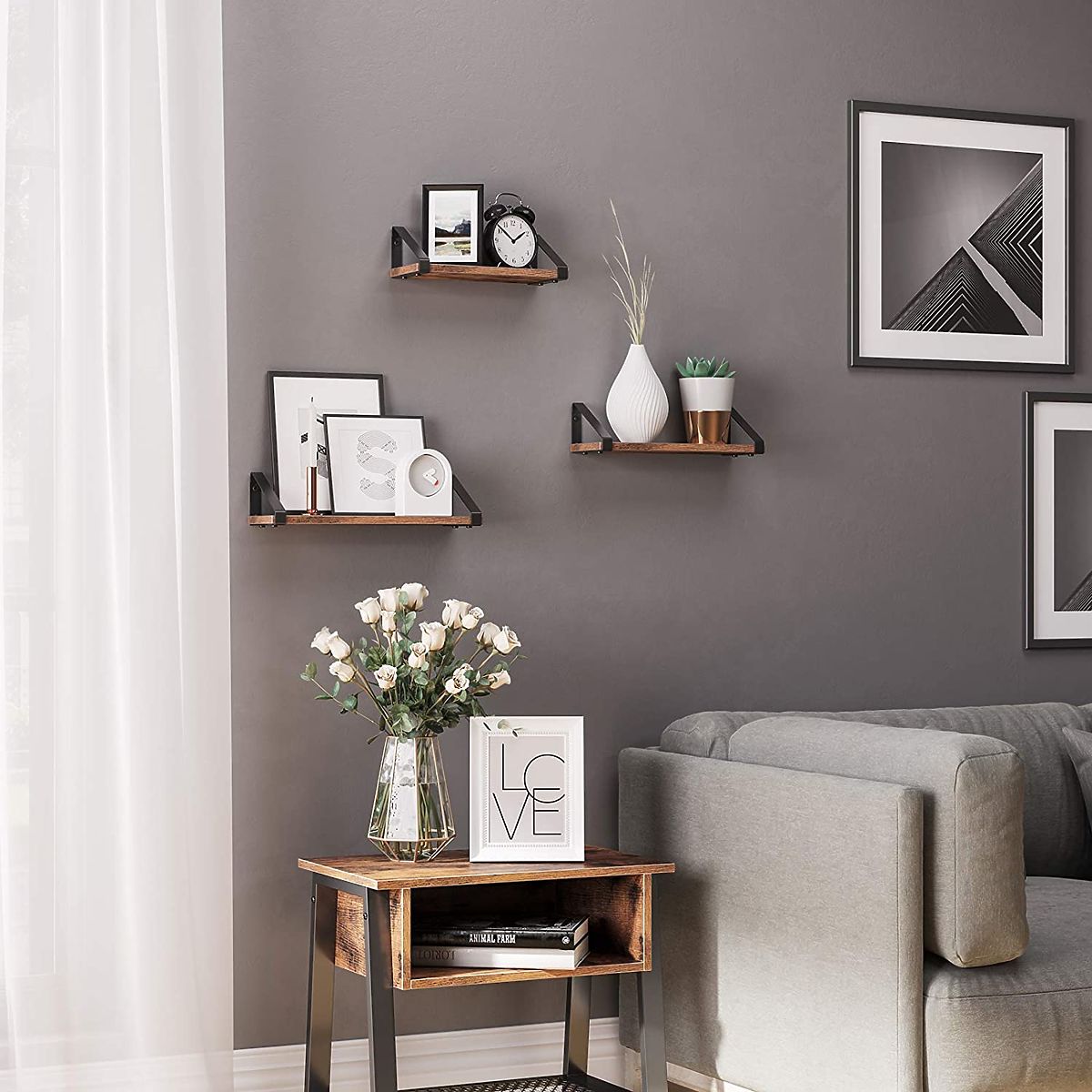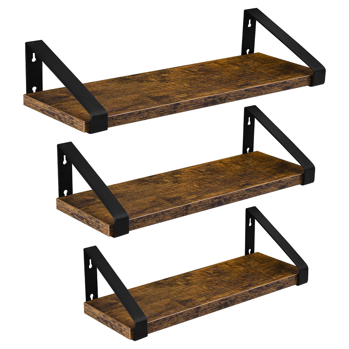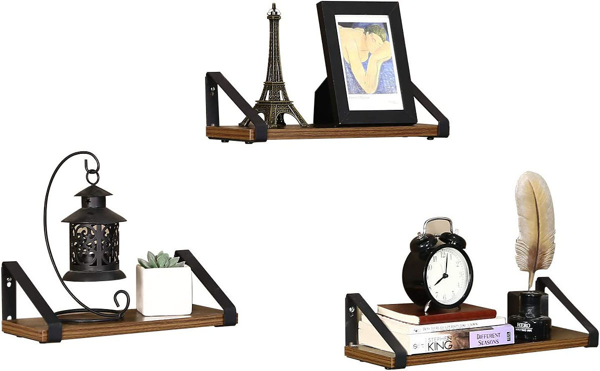 Set of 3 loft-style shelves in antique oak color. .. more