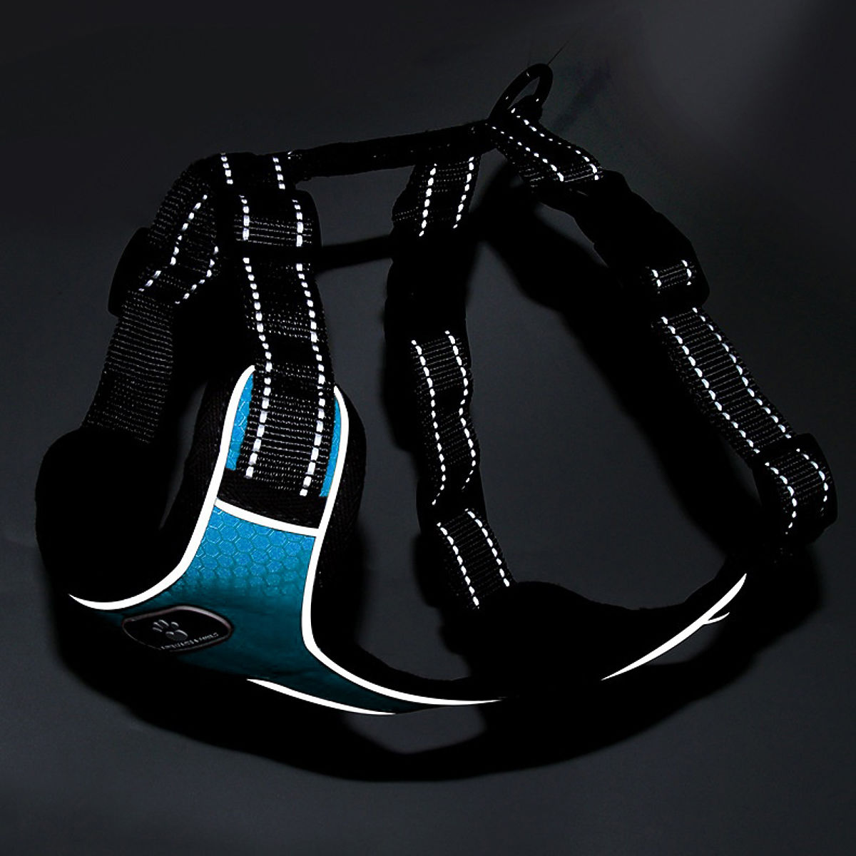 Blue training harness for dogs, adjustable and reflective, size L. .. more