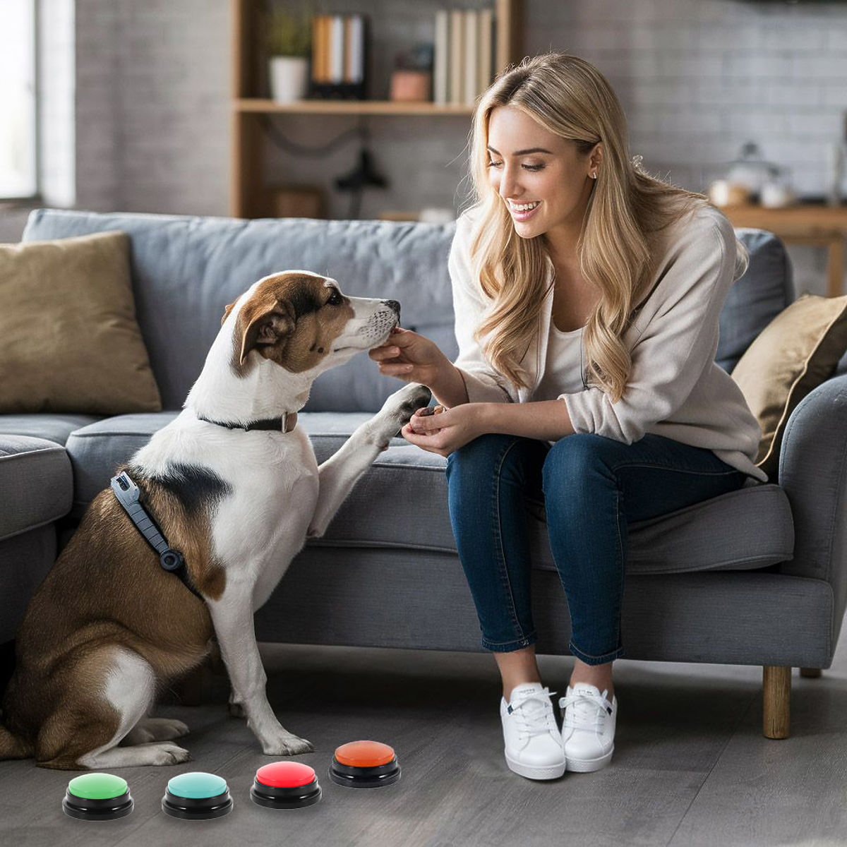 Would you like to improve communication and strengthen the bond with your pet? Our set of 4 TALKER sound buttons for dogs is the perfect solution! With this innovative product, you can record sounds that help you communicate with your animal easily and intuitively while having great fun!