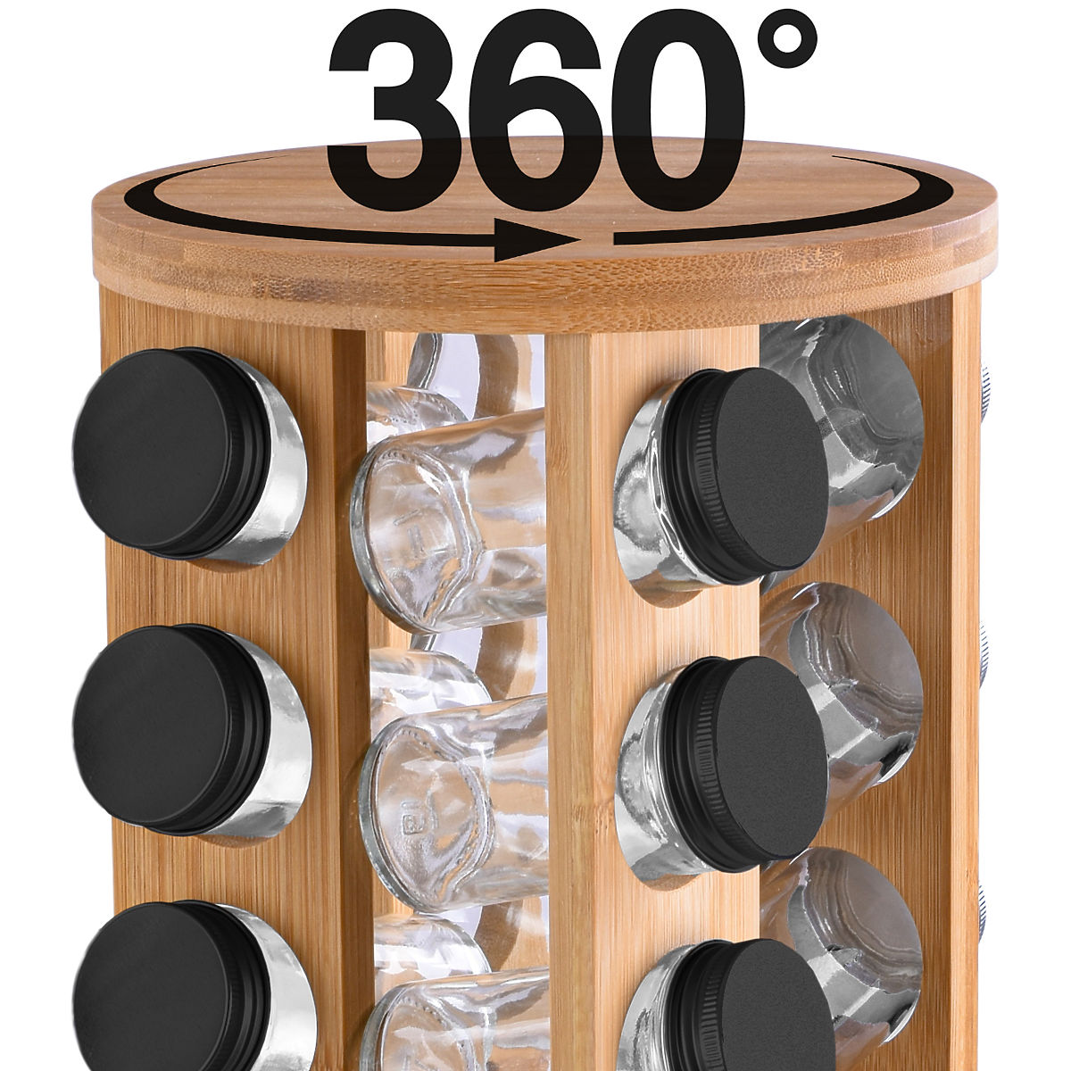 ⭐Bamboo wood⭐20 glass jars⭐72 labels⭐360° rotation