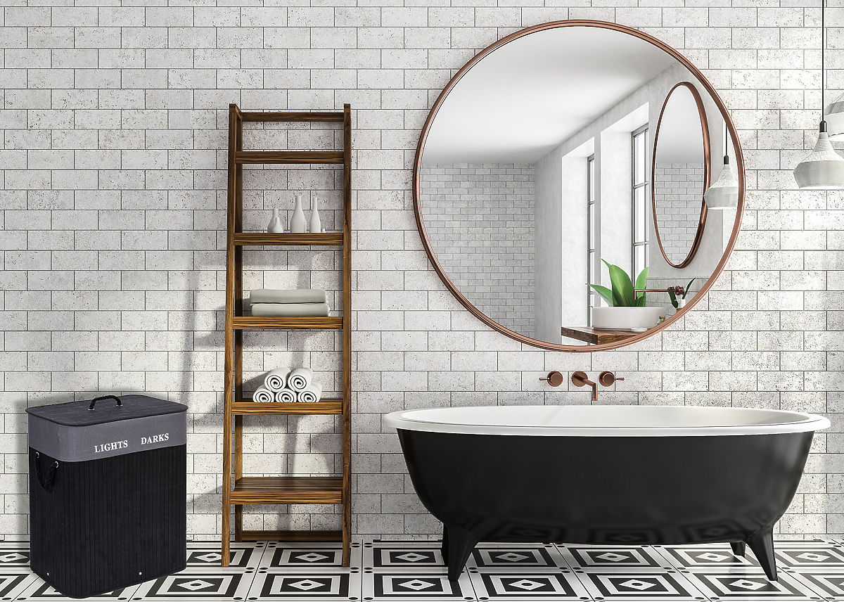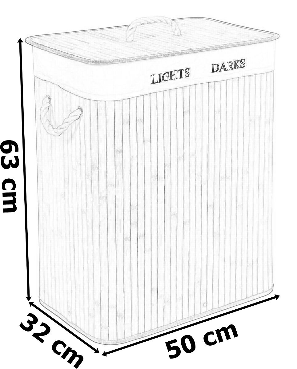 Bamboo Laundry Basket 2 Compartments Black FSC Capacity: 100 liters | Colors: Black | Gray The most beautiful and durable, stylish laundry basket with a capacity of 100 liters. Made from natural bamboo. The interior is equipped with a linen bag with a practical divider for light and dark laundry. Simple construction, sturdy design. Conceals unpleasant odors. Allows for convenient quick washing. Product Features Made from natural bamboo Designed for bathroom, laundry room, or bedroom Divider separating light and dark clothing Large capacity Interior lined with linen material Convenient lid with rope handle Two rope handles for easy carrying Modern color Product Dimensions Height: 63 cm Width: 50 cm Depth: 32 cm Capacity: 100 liters Additional Information The displayed colors are indicative - they may differ from the actual ones due to different monitor settings and photo editing processes. Actual dimensions may vary from those listed above. Error tolerance may be +/- 5%. Brand: Gockowiak Product Code: MG322703 Color: Black-Gray Height: 63 cm Width: 50 cm Depth: 32 cm Intended Use: Bathroom | Dressing Room | Bedroom