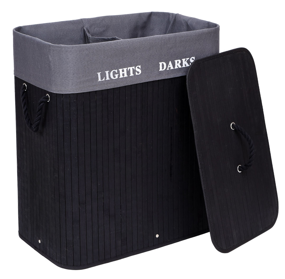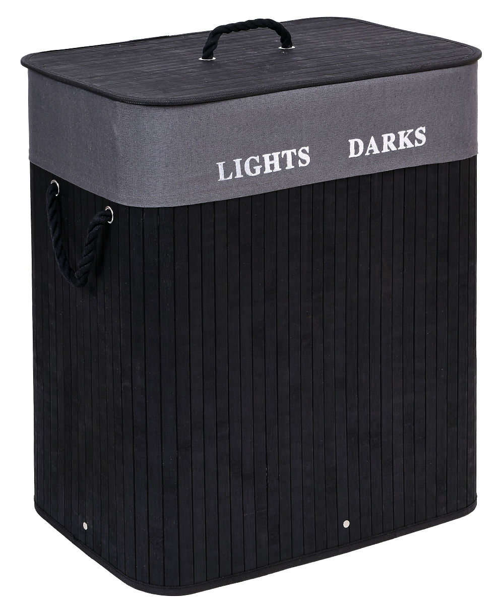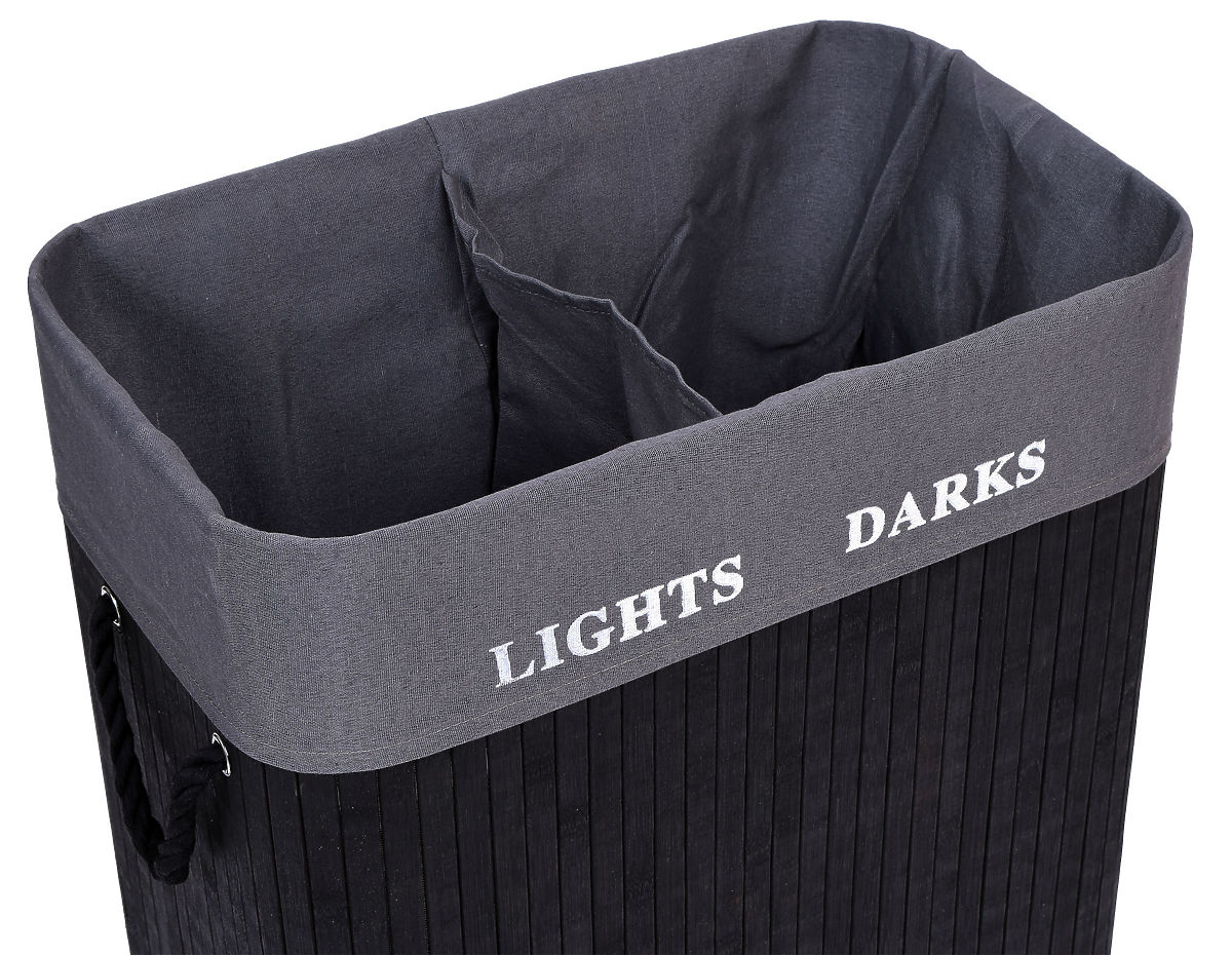 Bamboo Laundry Basket 2 Compartments Black FSC