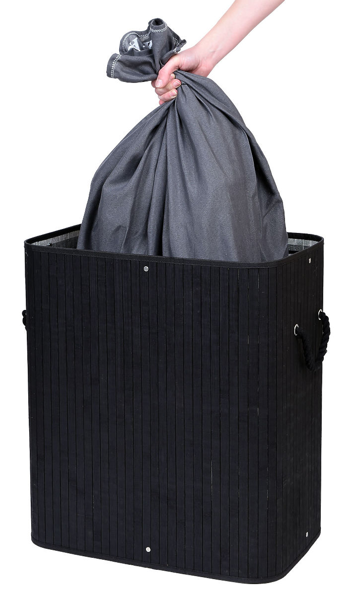 49198-0 Bamboo Laundry Basket 2 Compartments Black FSC