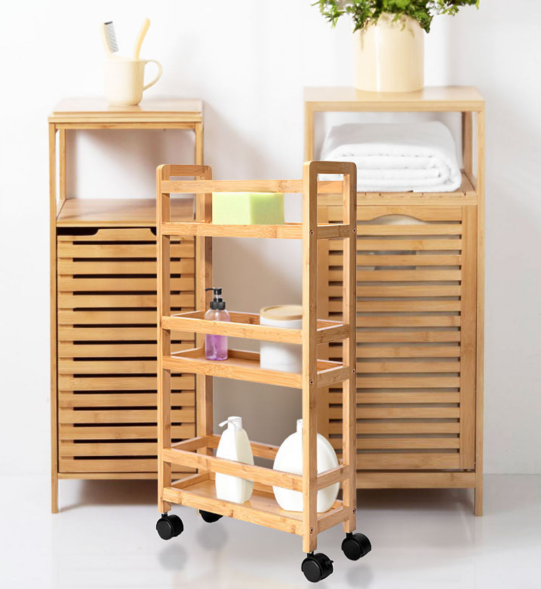 Lukahome.co.uk   »   Furniture   /   Shelves   /   Bamboo Rolling Shelf INAKI 3 Levels Natural