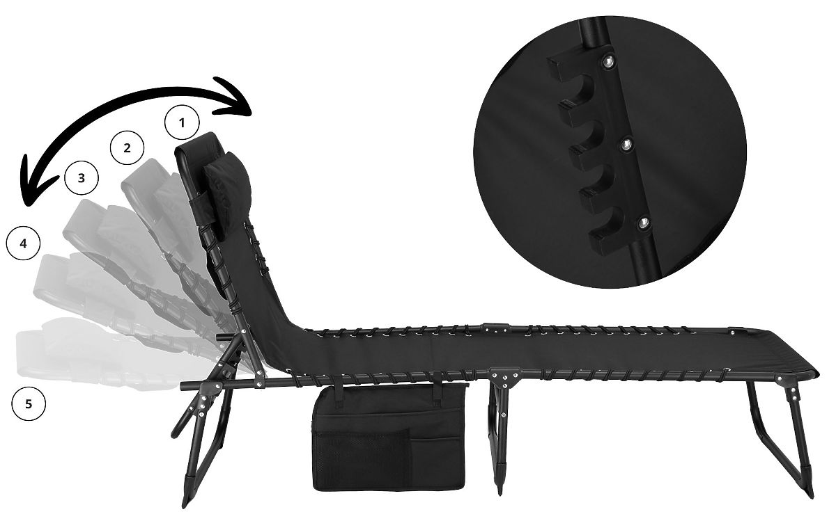 49248-0 Folding Garden Lounger Adjustable FENIKS Black
