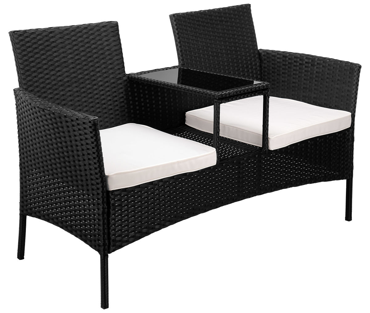 Garden Bench from Technorattan Sofa CORDOBA Black with Beige Cushions