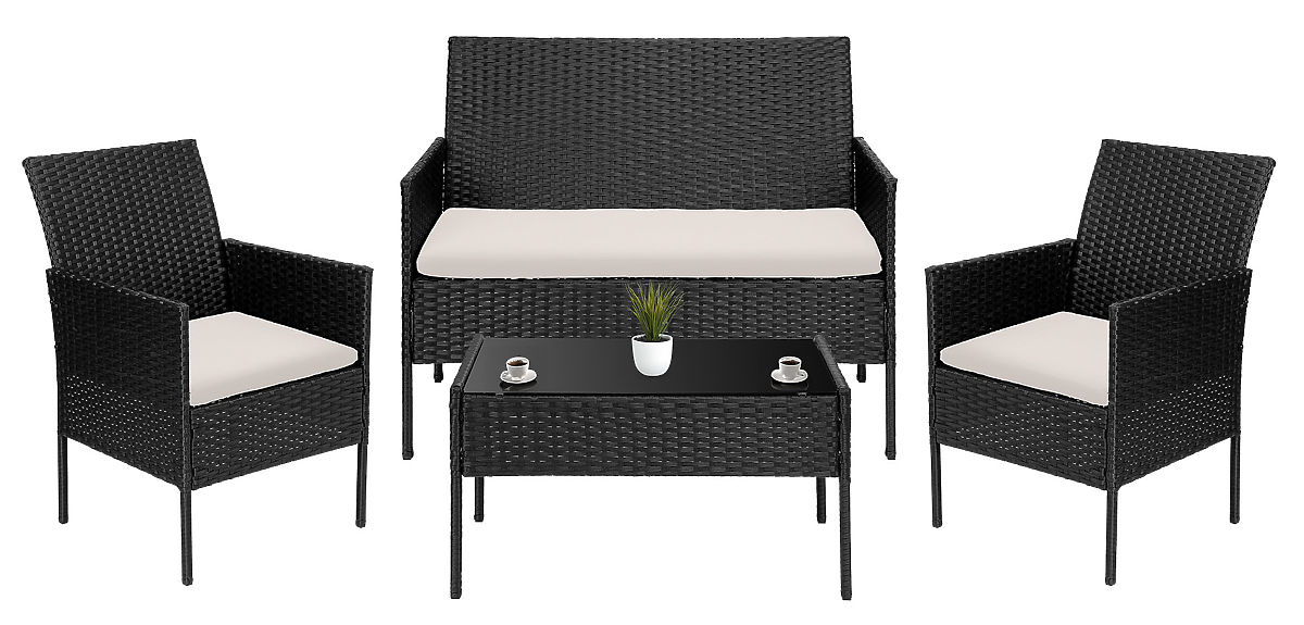 Garden Furniture Set 4-in-1 MAGNOLIA Black with Beige Cushions Model: MAGNOLIA | Furniture Color: Black | Cushion Color: Beige