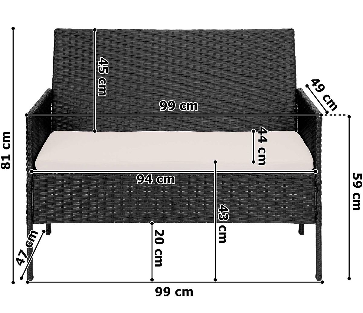 Color: Black technorattan, beige cushions