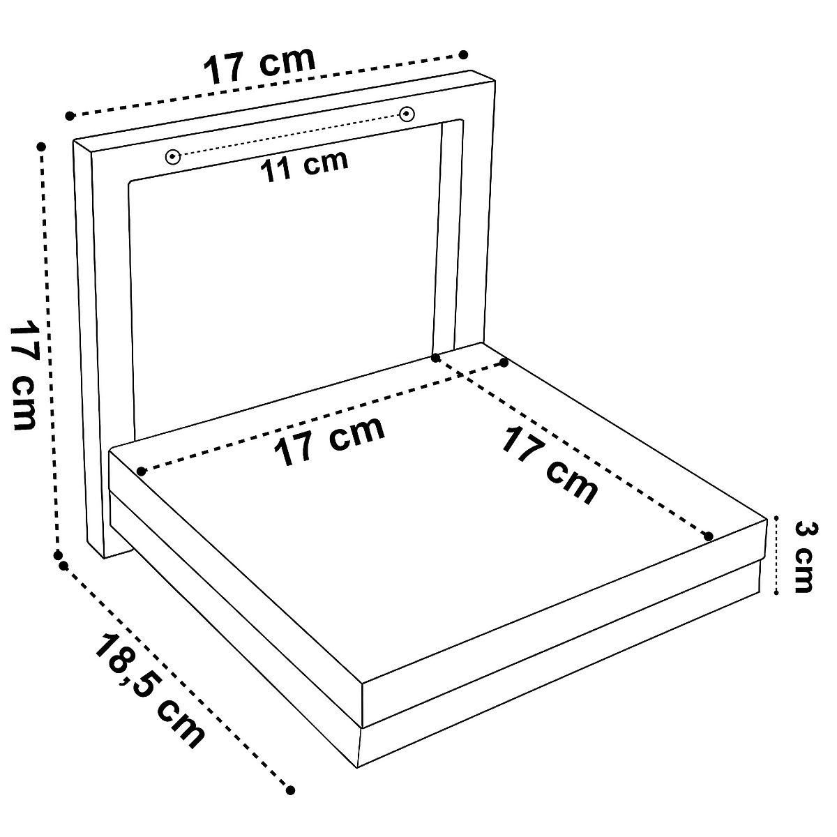 Shelf: 17 cm x 17 cm