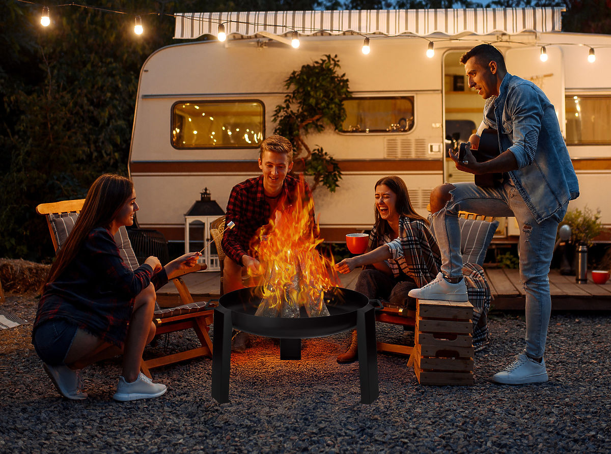 Steel fire pit with heat-resistant paint and carrying handles, 60 cm diameter. .. more