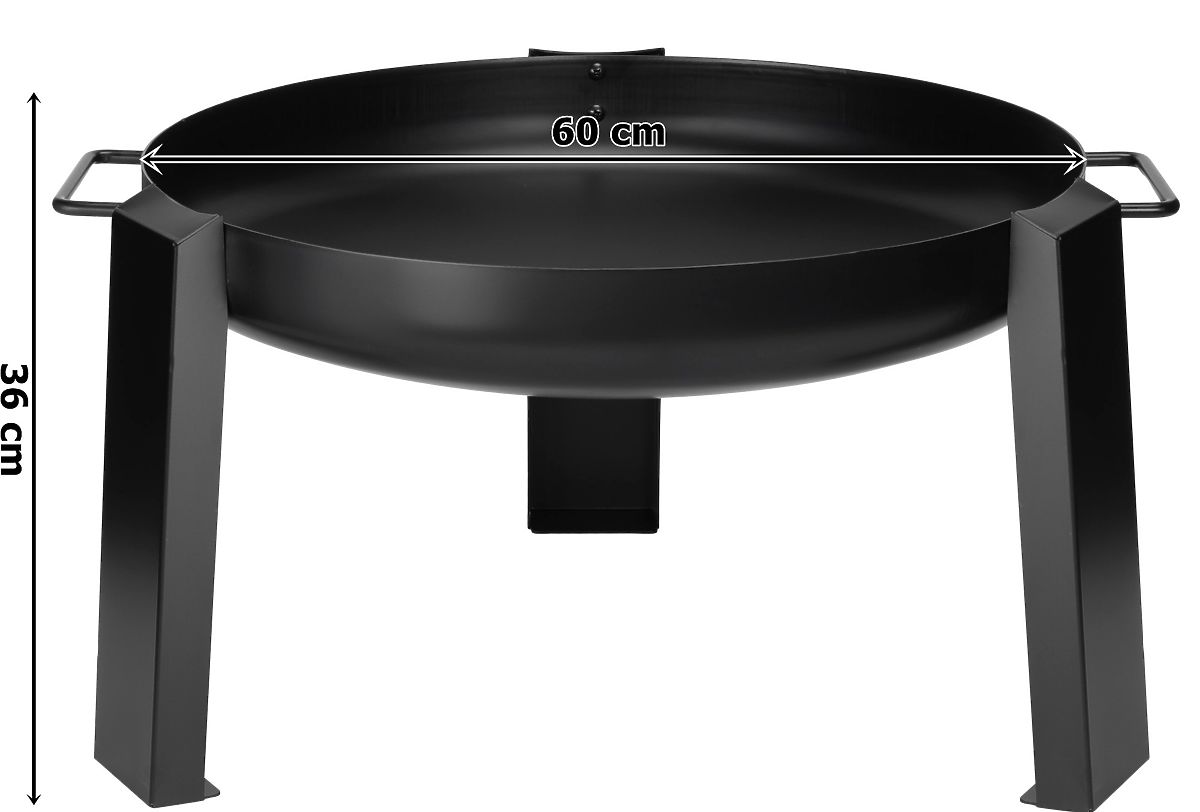 Cast Iron-Steel Fire Pit 60 cm HOGAR Purpose: Outdoor events | Material: Steel ✨Carrying handles ✨Heat-resistant paint✨ The Hogar fire pit is the perfect solution for anyone looking to add a touch of warmth and style to their garden or patio. It is not just a functional product, but also an elegant decorative element that adds charm to any outdoor space. Made from high-quality steel, its sleek black color fits into any environment, and its compact dimensions and features make it easily the centerpiece of evening gatherings. ✅ Made entirely of steel ✅ Heat-resistant paint ✅ Diameter 60 cm ✅ Sheet thickness 2 mm ✅ 3 stable legs ✅ Carrying handles ✏️ Specifications: Material: Steel Finish: Heat-resistant paint Color: Black Functionality: Carrying handles Base: 3 stable legs Weight: 9.3 kg ✍️ Dimensions Fire pit diameter: 60 cm Total height: 36 cm Sheet thickness: 2 mm Additional Information The colors shown are indicative and may differ from the actual ones due to different monitor settings and photo editing processes. Actual dimensions may vary from those listed above. Error tolerance may be +/- 5%. Brand: Gockowiak Product EAN code: 5905523066876 Color: Black Diameter: 60 cm Height: 36 cm Material thickness: 2 mm
