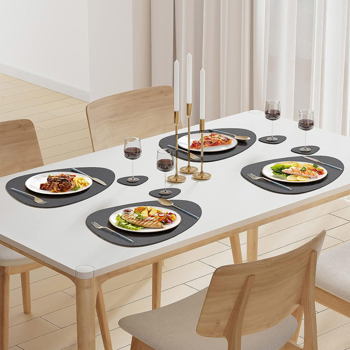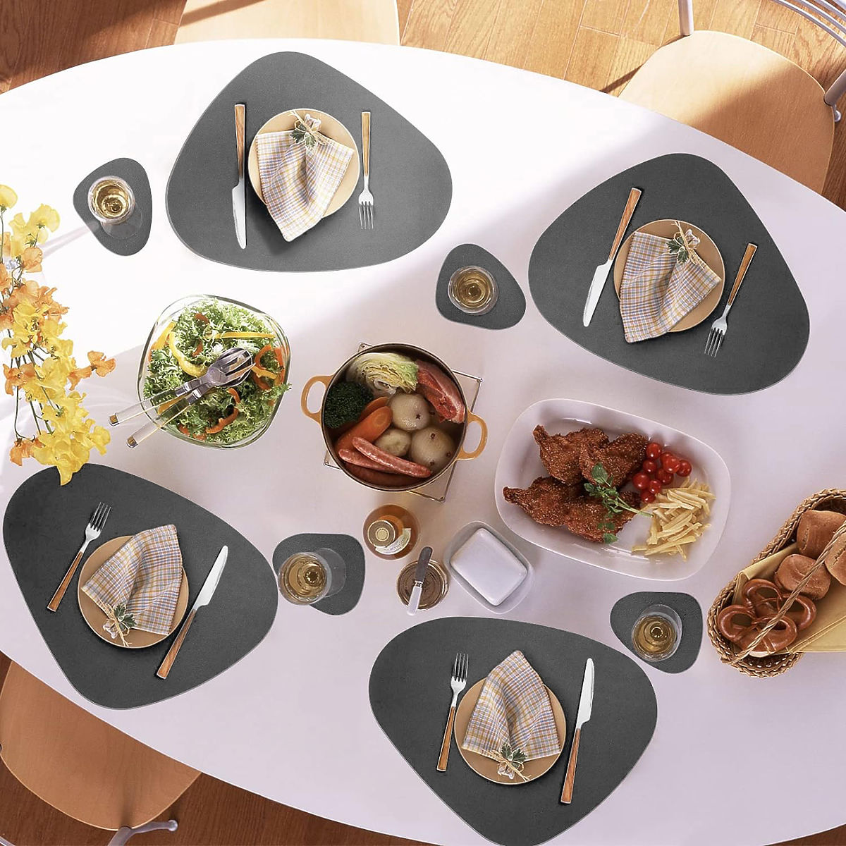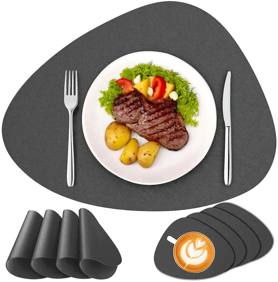 The Trival placemat set is a high-quality table placemat set in an elegant grey color, made from durable PVC material. This set is the perfect solution not only for protecting your table from stains and damage but also for adding elegance to your interior. The set includes 4 large mats, perfect for placing under plates, providing a stable and aesthetic base for your meals. Additionally, the set includes 4 smaller mats, ideal for cups and mugs, protecting the table surface from potential damage caused by hot beverages. The Trival placemat set not only cares for your table but also enhances its appearance.