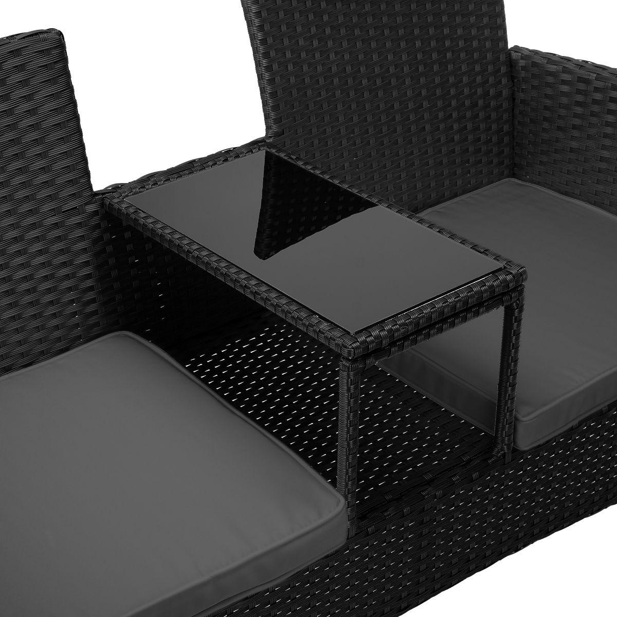Garden Bench from Technorattan Sofa CORDOBA Black with Gray Cushions