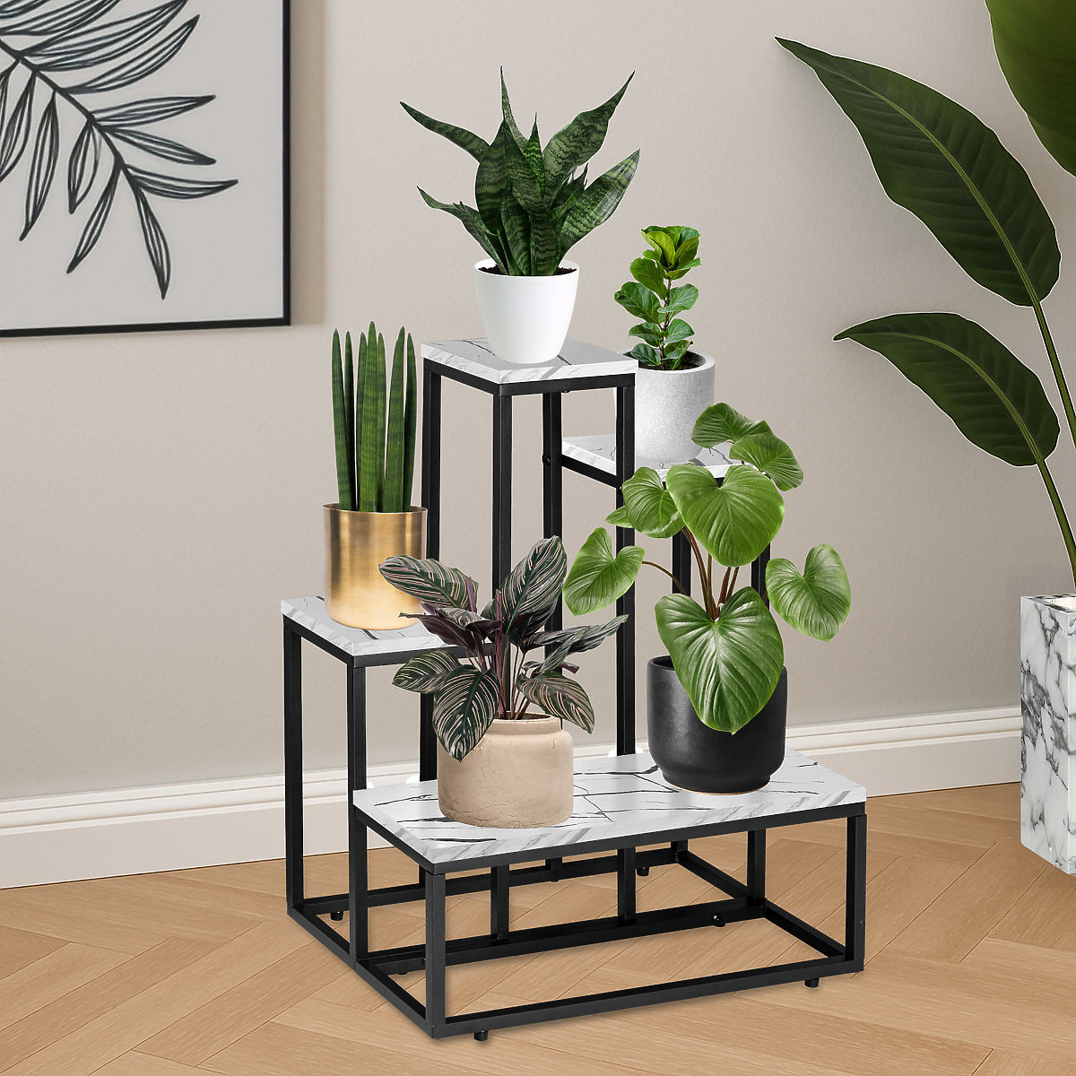Sturdy plant stand with marble imitation shelves. .. more