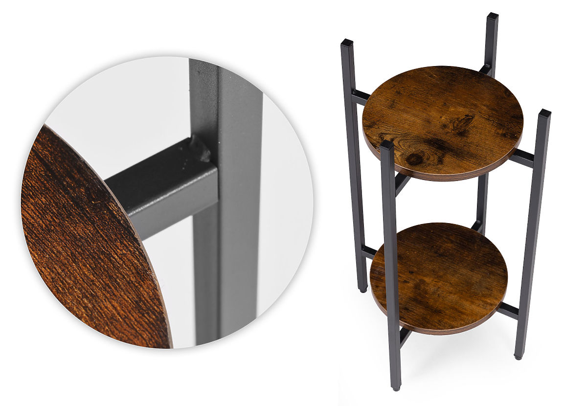 DURABLE MATERIALSThe flower stand is made of powder-coated steel, ensuring resistance to corrosion and mechanical damage. The chipboard shelves are finished in a color imitating natural wood, emphasizing the decorative, loft character of the furniture.
