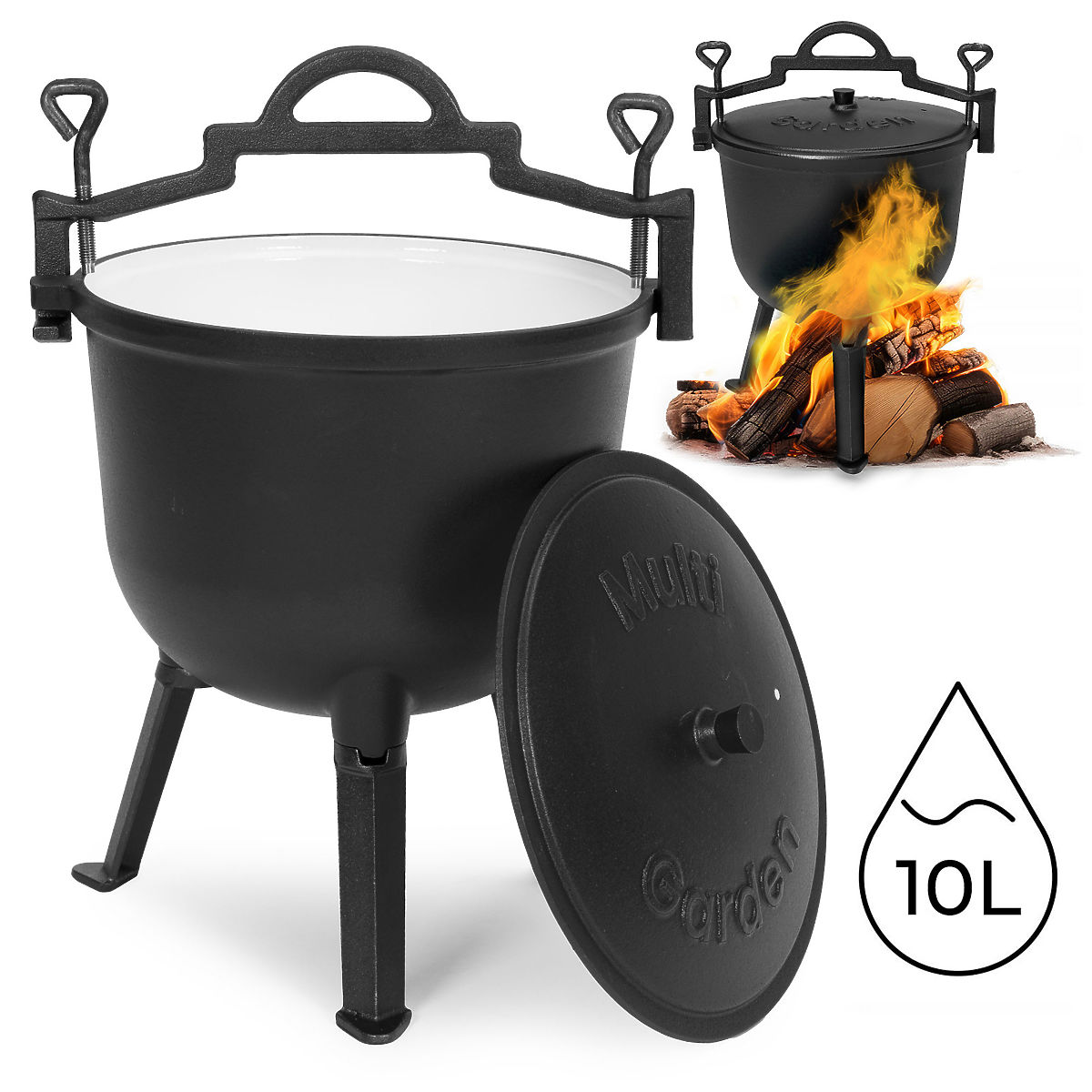 Lukahome.co.uk » Gardens / Grills / Enamelled Cast Iron Pot 10L Standing Hunting Pot Fire Pit Grill MultiGarden