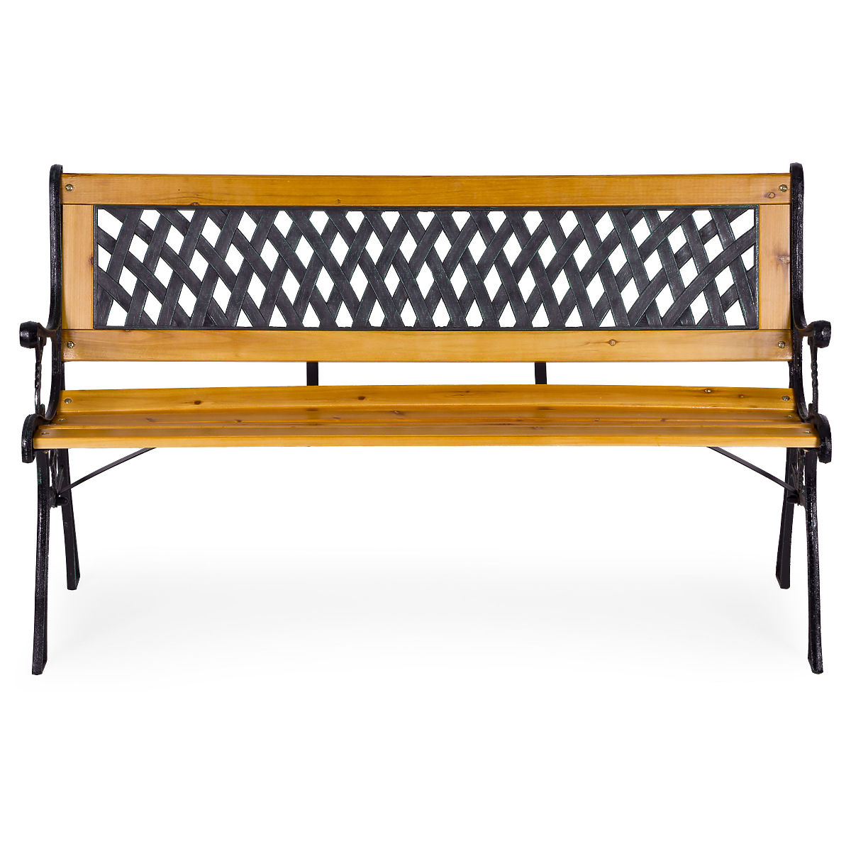 Lukahome.co.uk » Garden furniture / Garden bench / Wooden Garden Bench 126x51 cm with Lattice Backrest and Cast Iron Legs Park MultiGarden