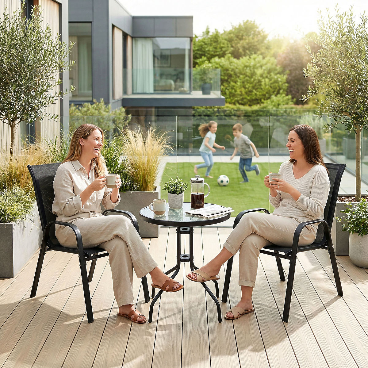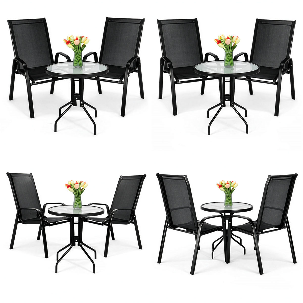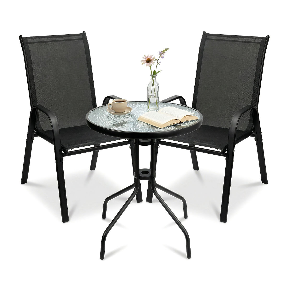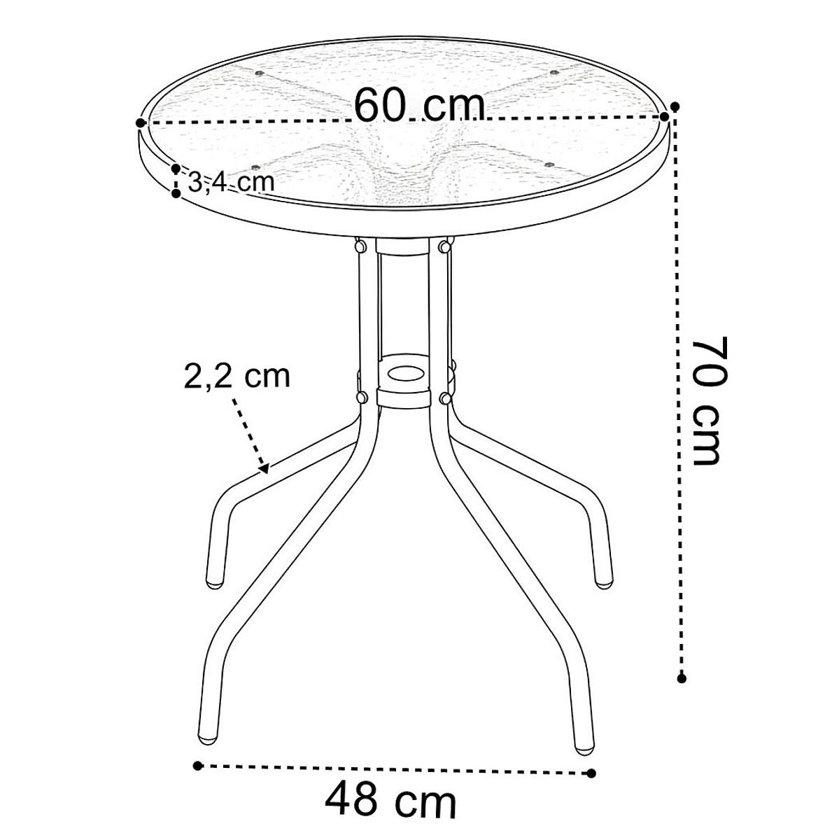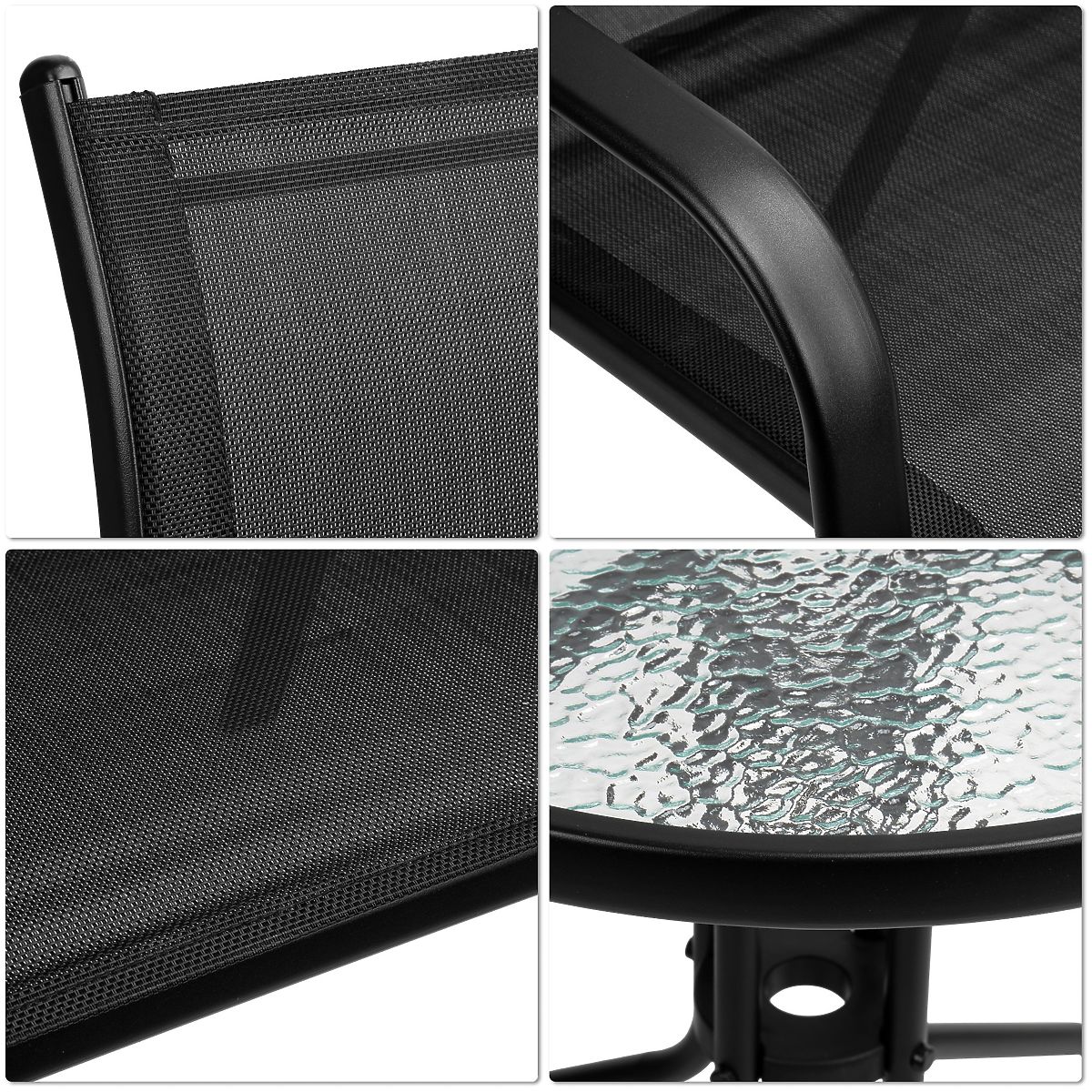 PALMA Garden Furniture Set Table + 2 Chairs Model: PALMA | Set Contents: Table + 2 Chairs | Use: Balcony, Terrace, Garden ⭐️ Complete set table + 2 chairs ⭐️ Sturdy steel construction ⭐️ Tempered glass top ⭐️ Compact dimensions ⭐️ Purchase from manufacturer ✍️ Specifications: Frame Material: Powder-coated steel Set Contents: Table and 2 chairs Seat Material: Textilene 2×1, 520 g/m² Top Material: Tempered glass Maximum chair load: 120 kg Maximum table load: 50 kg Assembly: Self-assembly Use: Balcony, Terrace, Garden Brand: eHokery ✍️ Chair Dimensions: Height: 89.5 cm Width: 55 cm Depth: 65.5 cm Seat Height: 41 cm Seat Depth: 45 cm Metal Profile Width: 4.5 cm ✍️ Table Dimensions: Height: 70 cm Top Diameter: 60 cm Tube Thickness: 2.2 cm Additional Information The colors shown are indicative - they may differ from the actual ones due to different monitor settings and photo editing processes. Actual dimensions may vary from those listed above. Error tolerance may be +/- 5%. Brand: eHokery Product Code: 610175MG EAN Code: 5904512610175 Furniture Color: Black Material: Plastic Number of Set Elements: 3 Intended Use: Garden | Terrace | Balcony Self-assembly: Yes