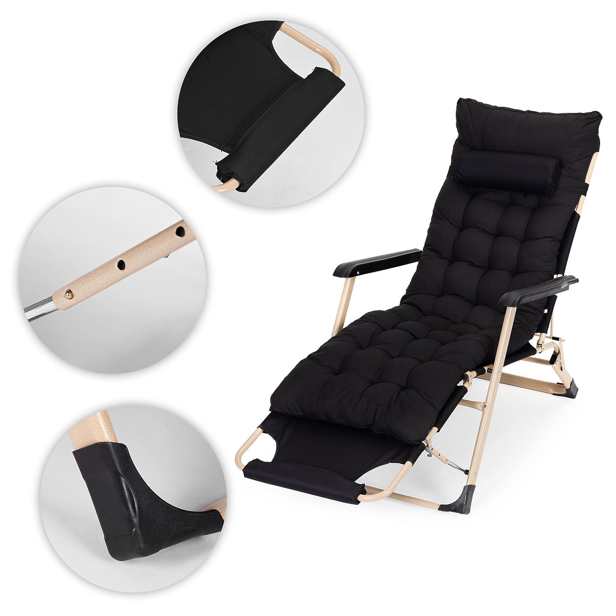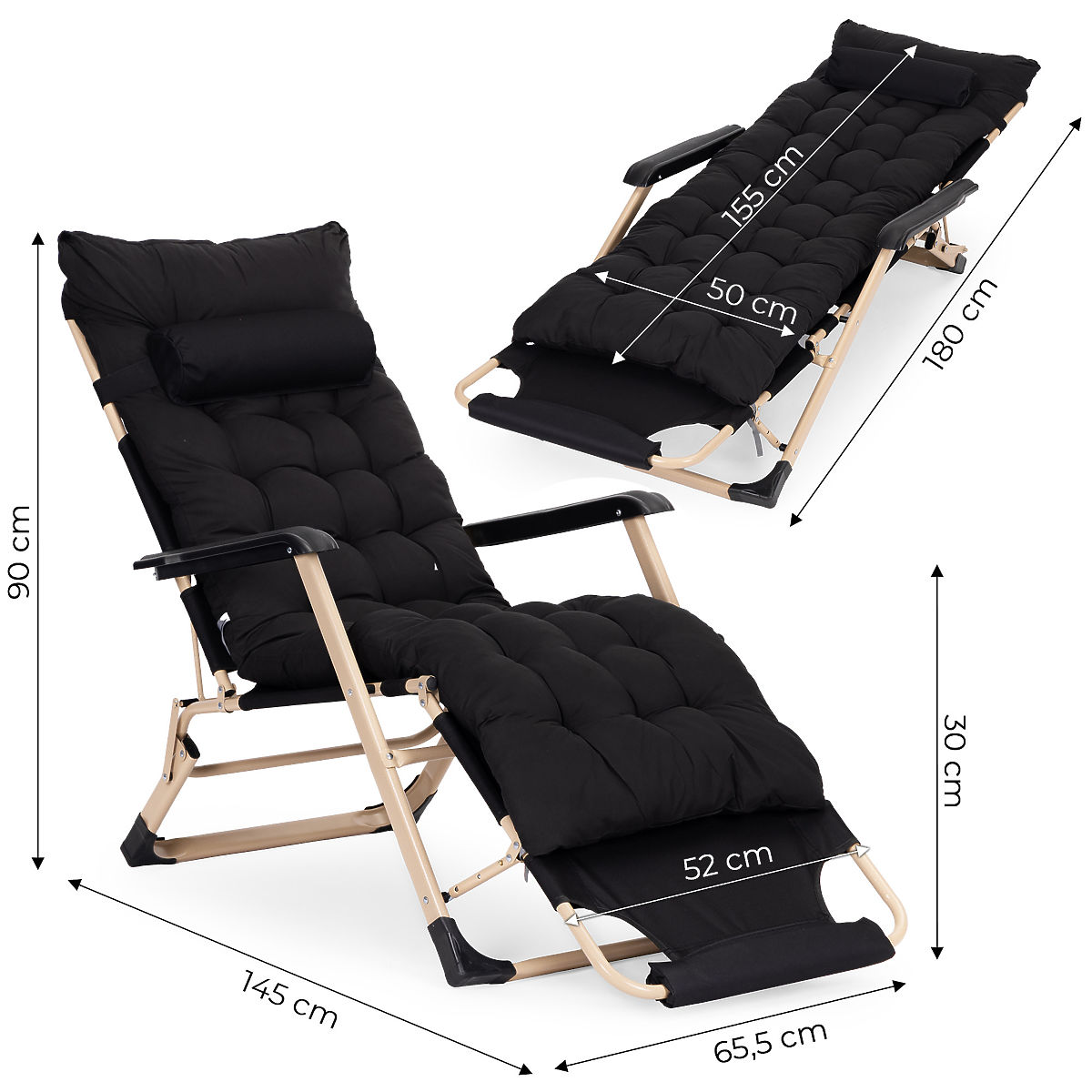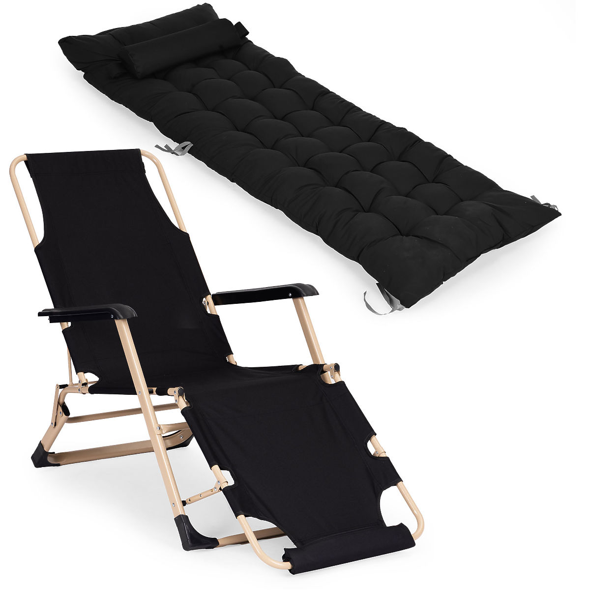 Lukahome.co.uk » Garden furniture / Garden loungers / Garden Beach Lounger 2-in-1 with Pillow, Adjustable Footrest, Black, Gold Frame MultiGarden